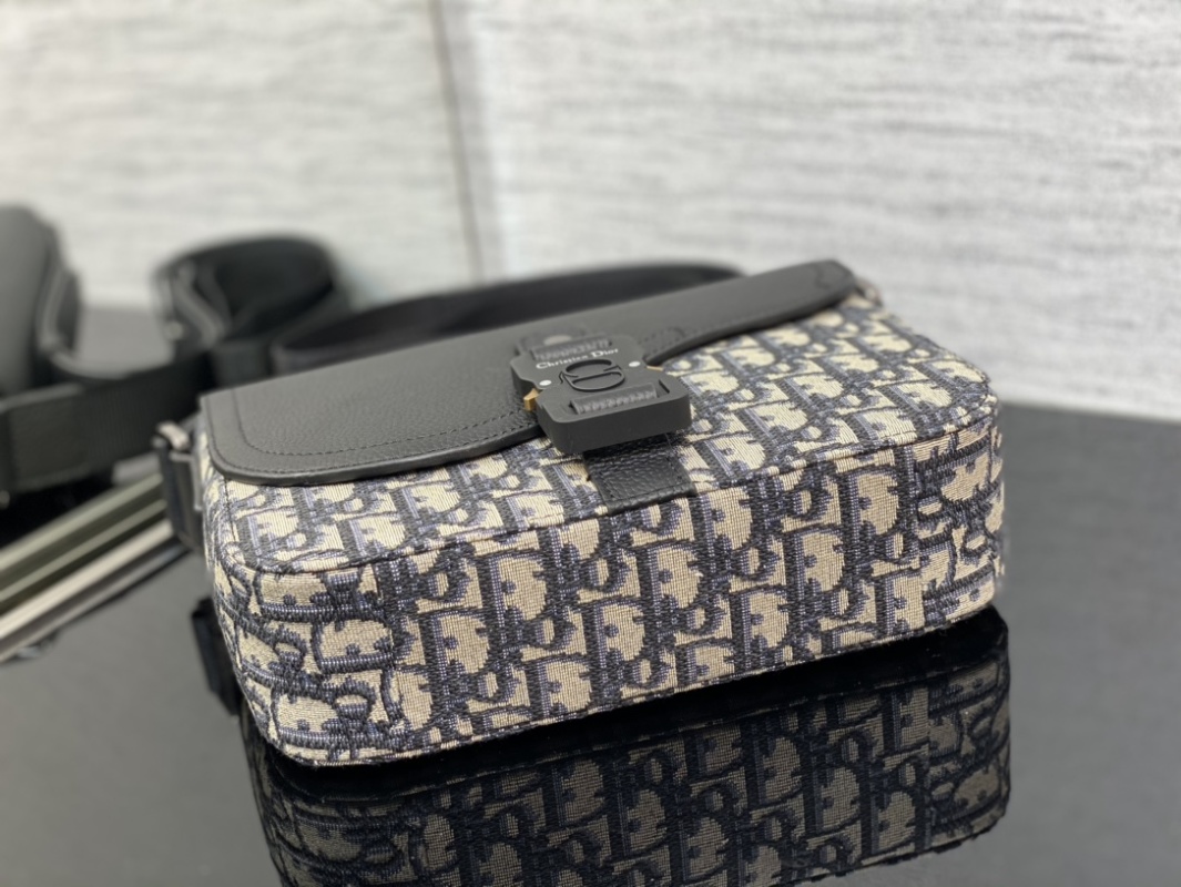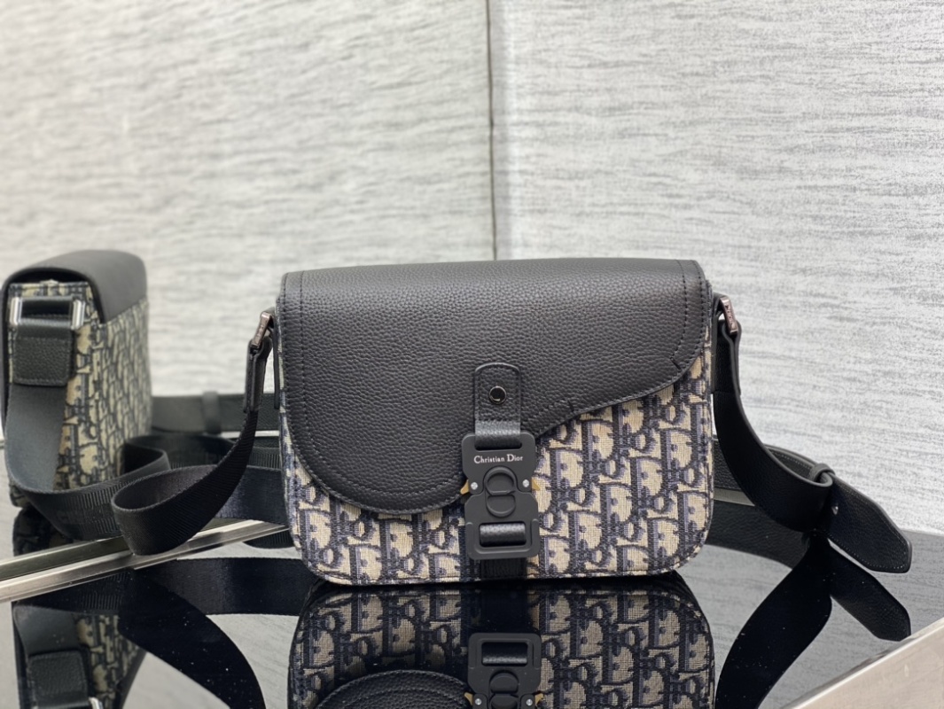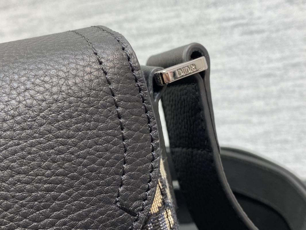 This saddle bag with shoulder strap is a new addition for the season, exuding sophistication and style. Adorned with beige and black Oblique print, the grained calfskin flap highlights the saddle silhouette, accented with aluminum buckles. The spacious interior compartment with a patch pocket can accommodate all your daily essentials. Featuring a mini size, adjustable leather and Christian Dior logo-embossed shoulder strap, it can be worn over the shoulder or crossbody. Crafted with black graine