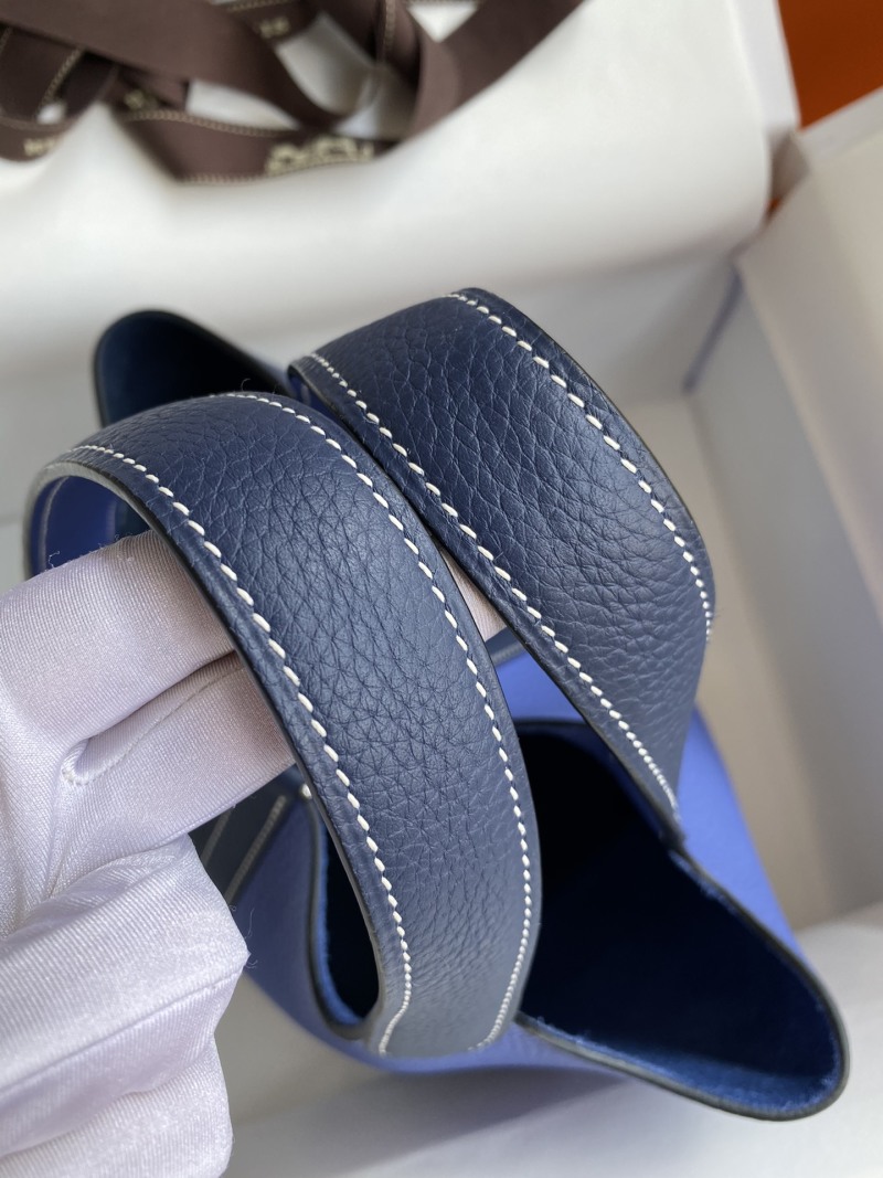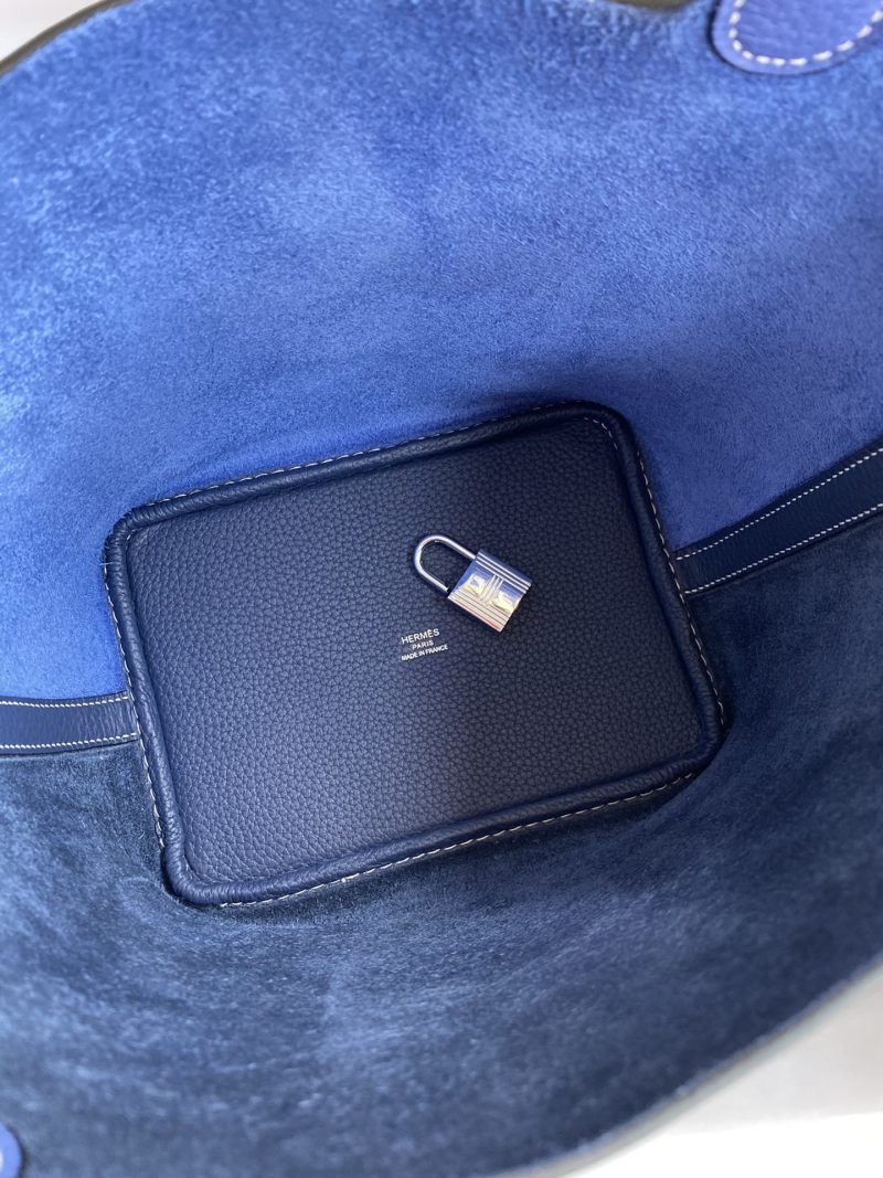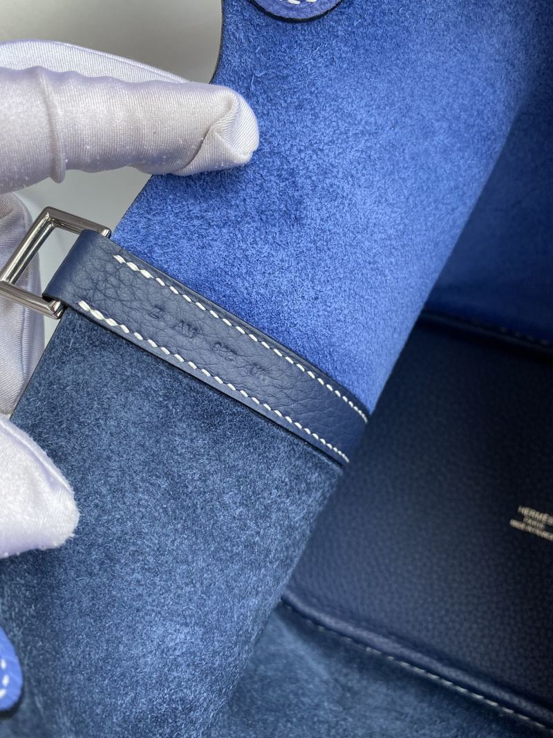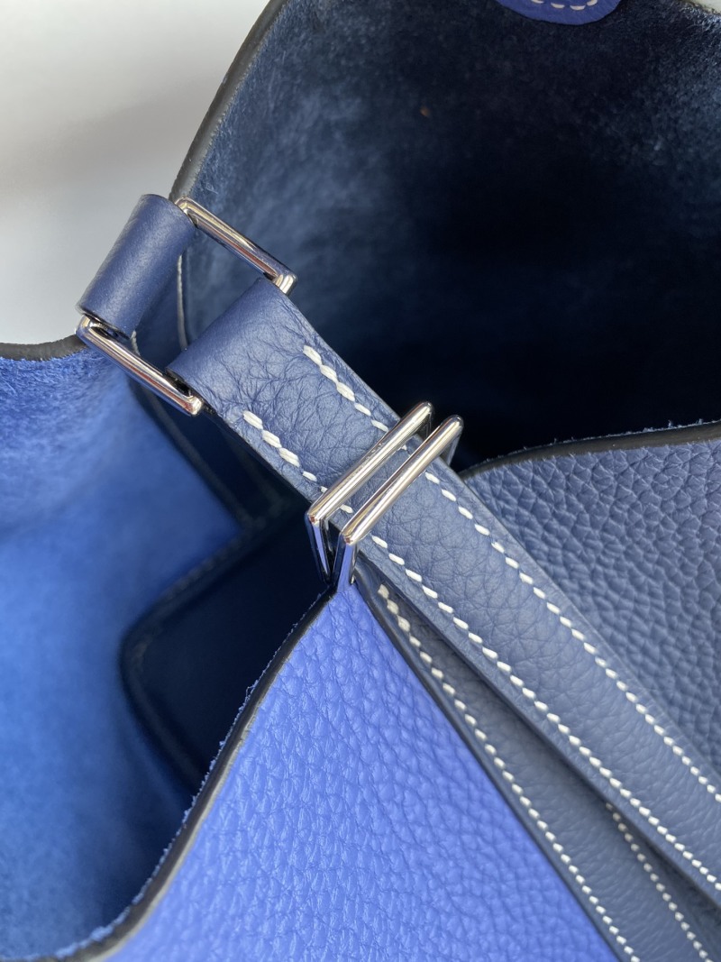 In stock: Handmade 👉 Picotin...18cm Basket Bag in Imported Taurillon Clemence Leather Light Blue with Sapphire Blue Accents and Silver Clasp