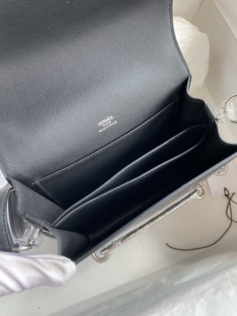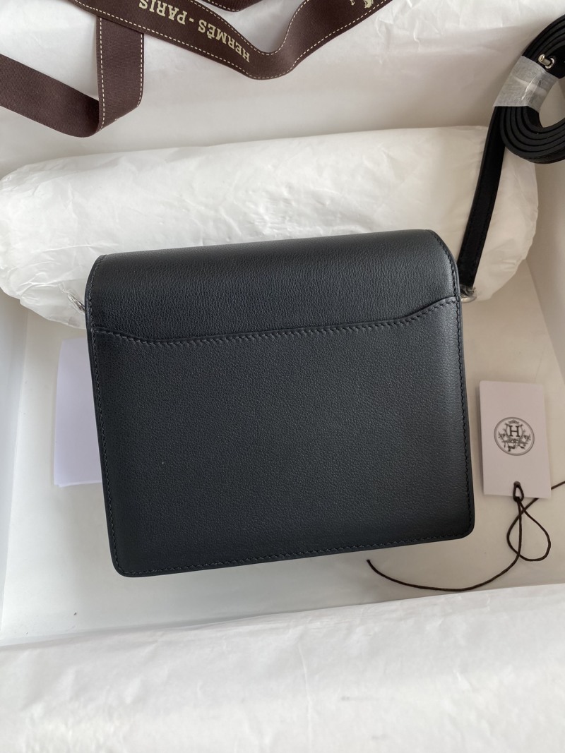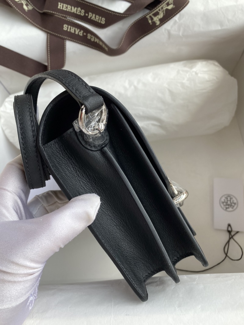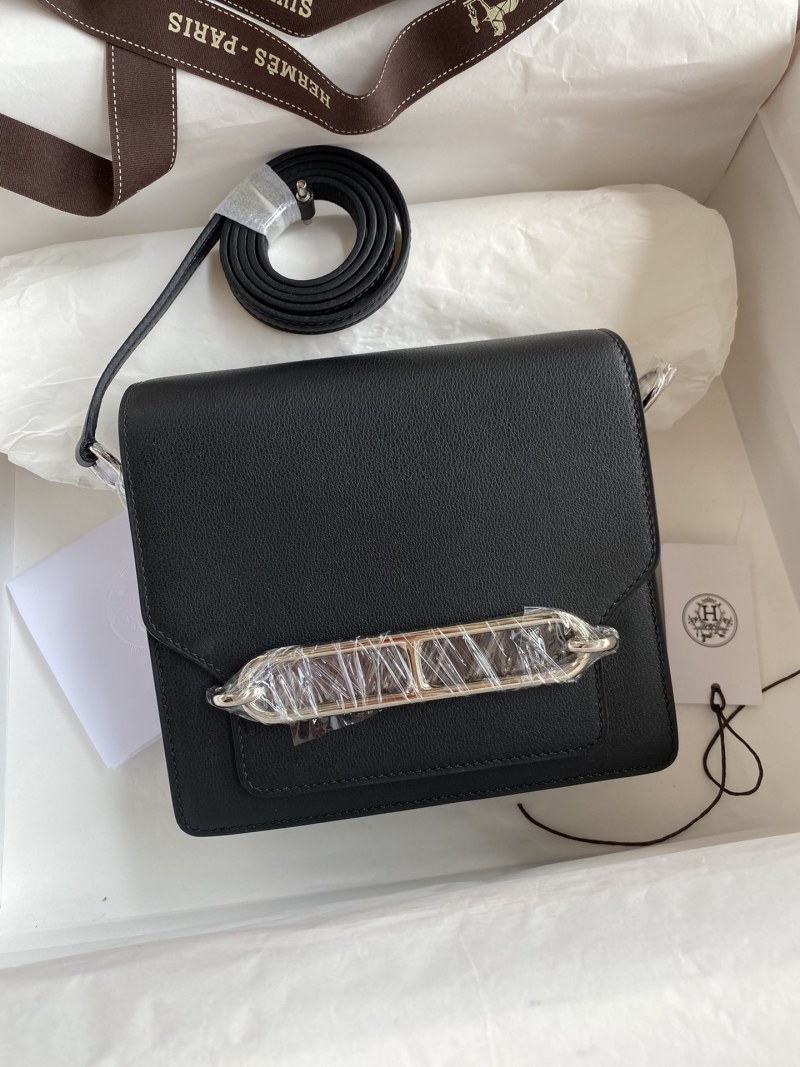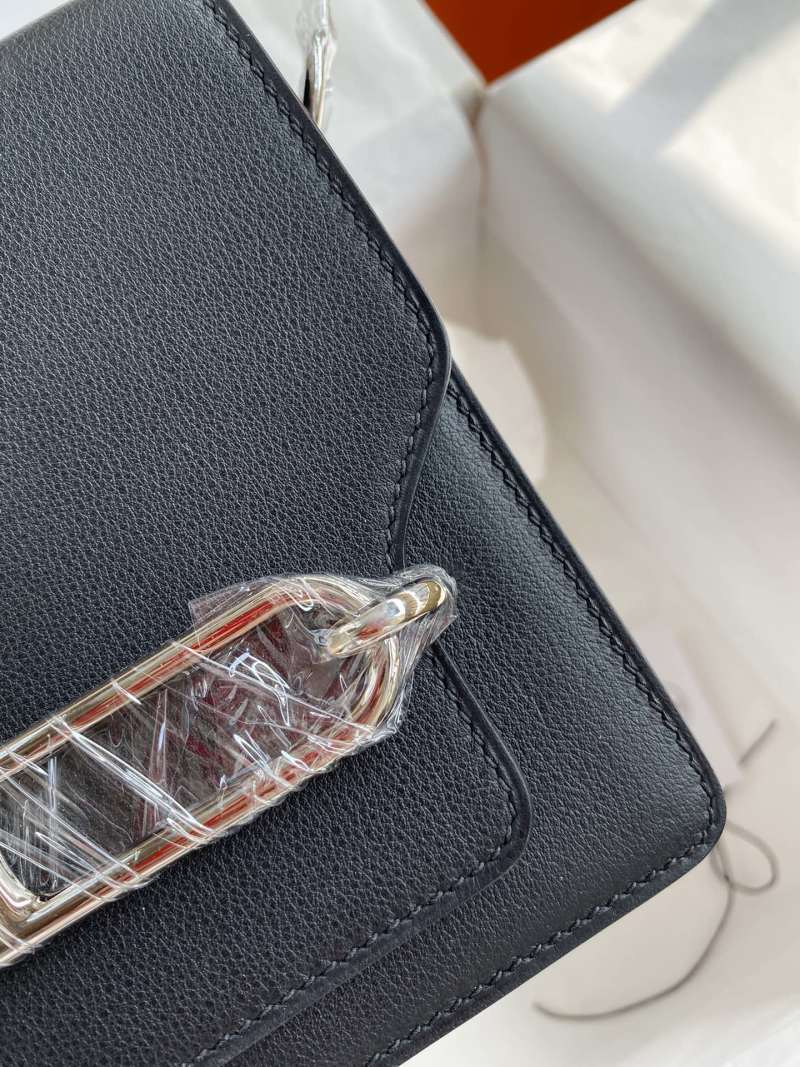 This small piglet bag features a mini Roulis 19cm design made from imported Evercolor leather in black, with a silver clasp and wax thread detailing. Available now in stock for purchase.