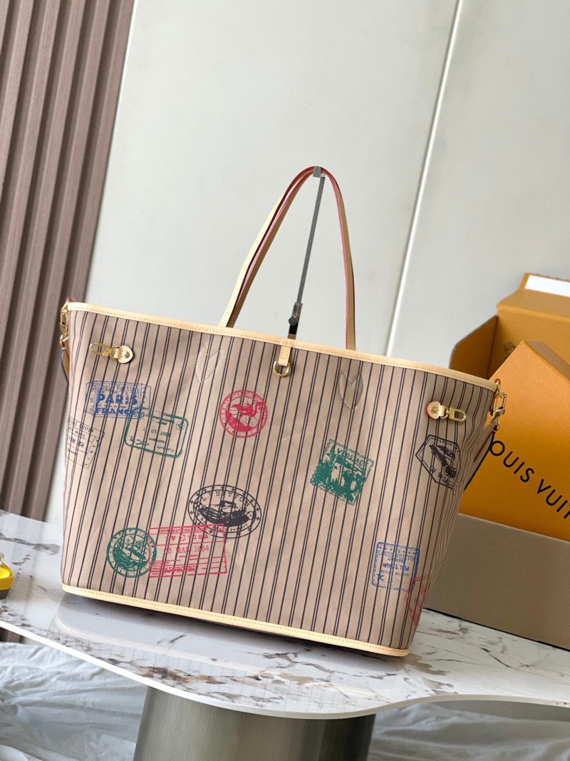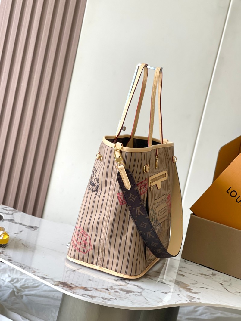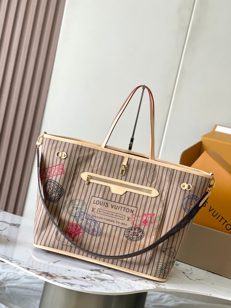 "Premium MB Chip Edition Authentic Leather Neverfull Bandouliere Inside Out GM Handbag"