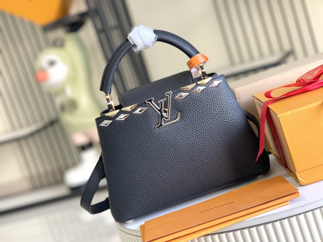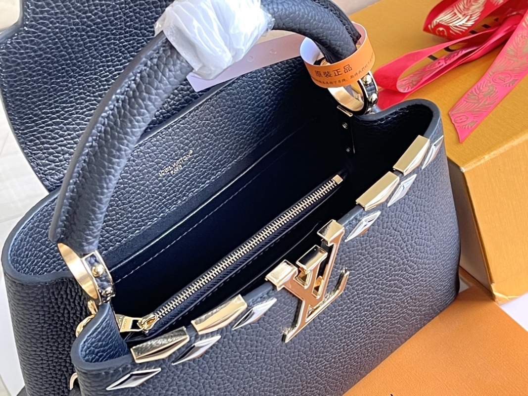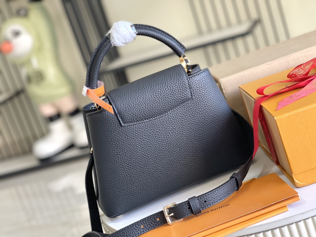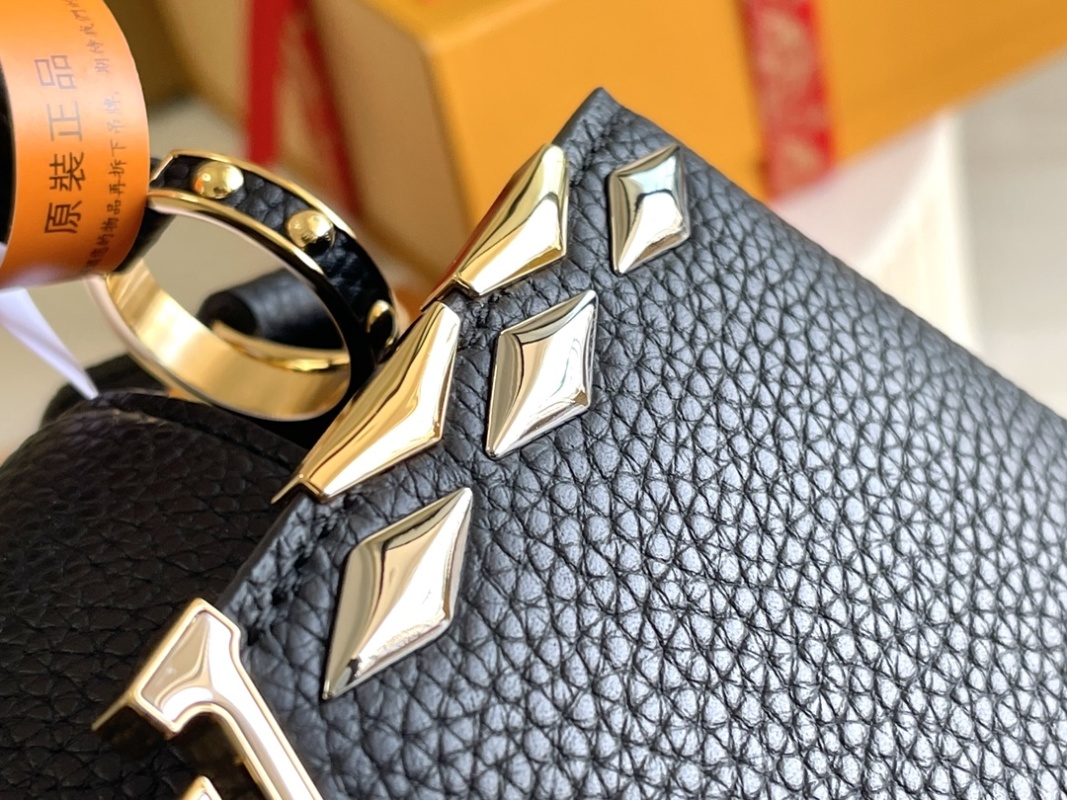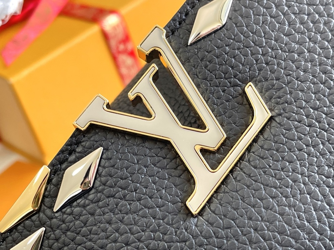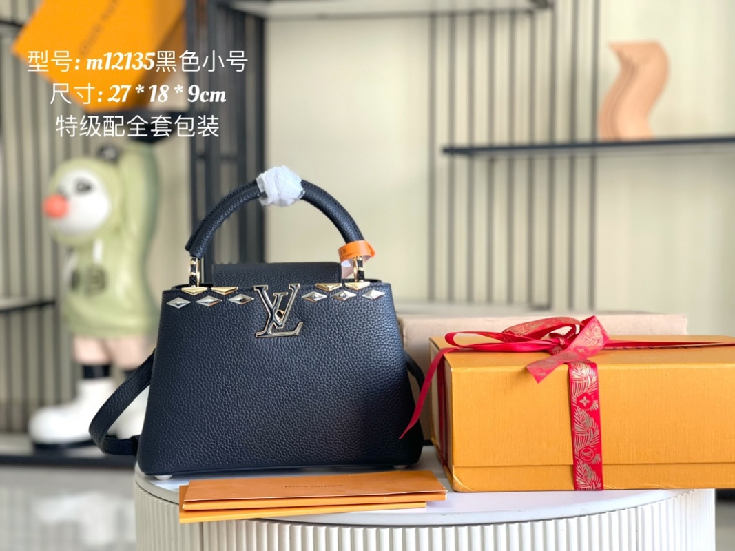 Exquisite Full Set Packaging (Chip Version)【Top Grade Boutique Original Leather 💋 M12135 Small Size Black and Gold Flower Crown】CapucinesBB Handbag