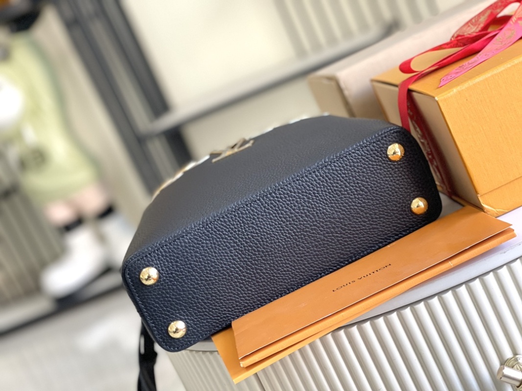 This season, the CapucinesBB handbag tells a brand new Capucines story. The delicate metal-tone Monogram floral strap enhances the classic handbag's soft and elegant charm. The exquisite white body with gold flower crown decoration is both stylish and practical. Detailed features include dimensions of 27.0 x 18.0 x 9.0 cm.