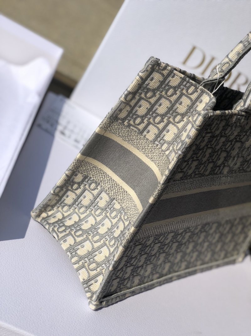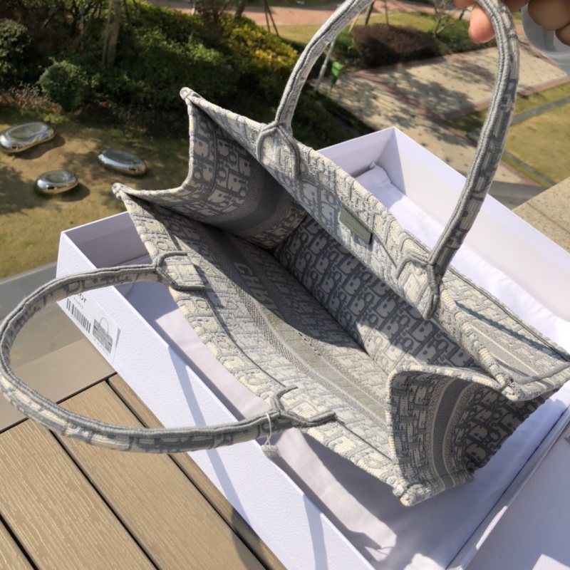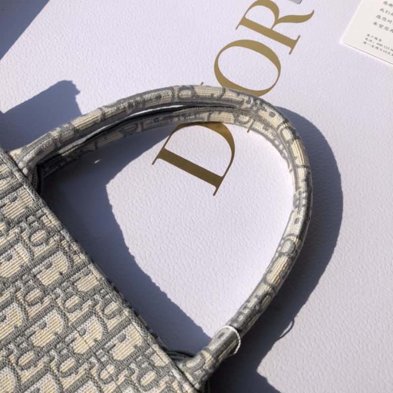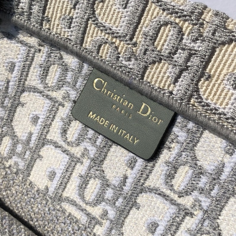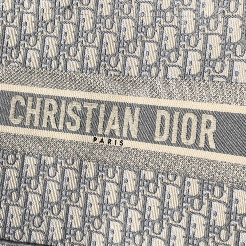 The DIOR Book Tote bag draws inspiration from creative director Maria Grazia Chiuri and is a flagship product that embodies Dior's aesthetic. This medium-sized tote bag is designed for carrying daily essentials, featuring grey Dior Oblique embroidery throughout with the "Christian Dior" logo on the front. The exquisite craftsmanship of this tote bag allows it to be paired with other small accessories or Mitzah scarves, creating a cohesive and harmonious look. Dimensions: 36.5×28×17.5cm (87118089