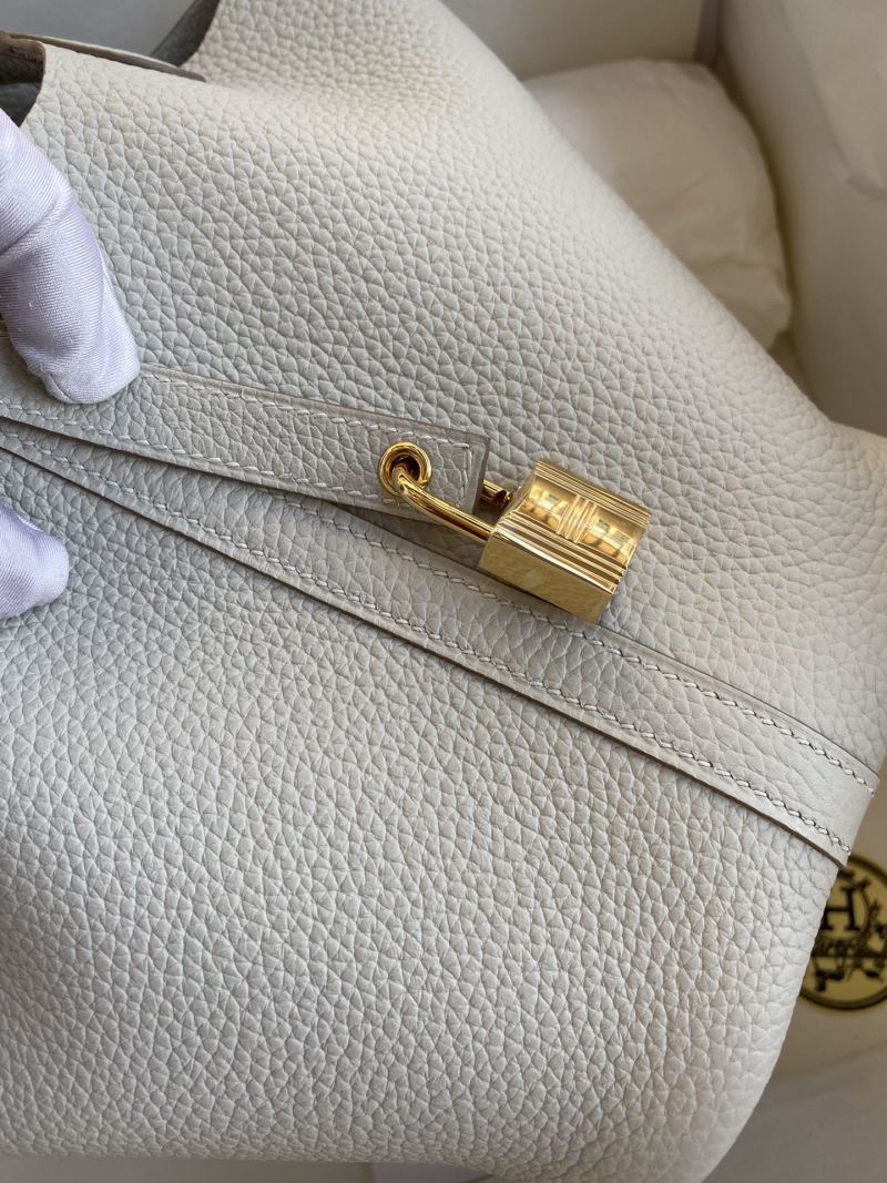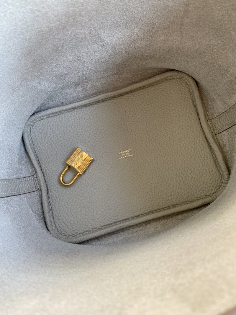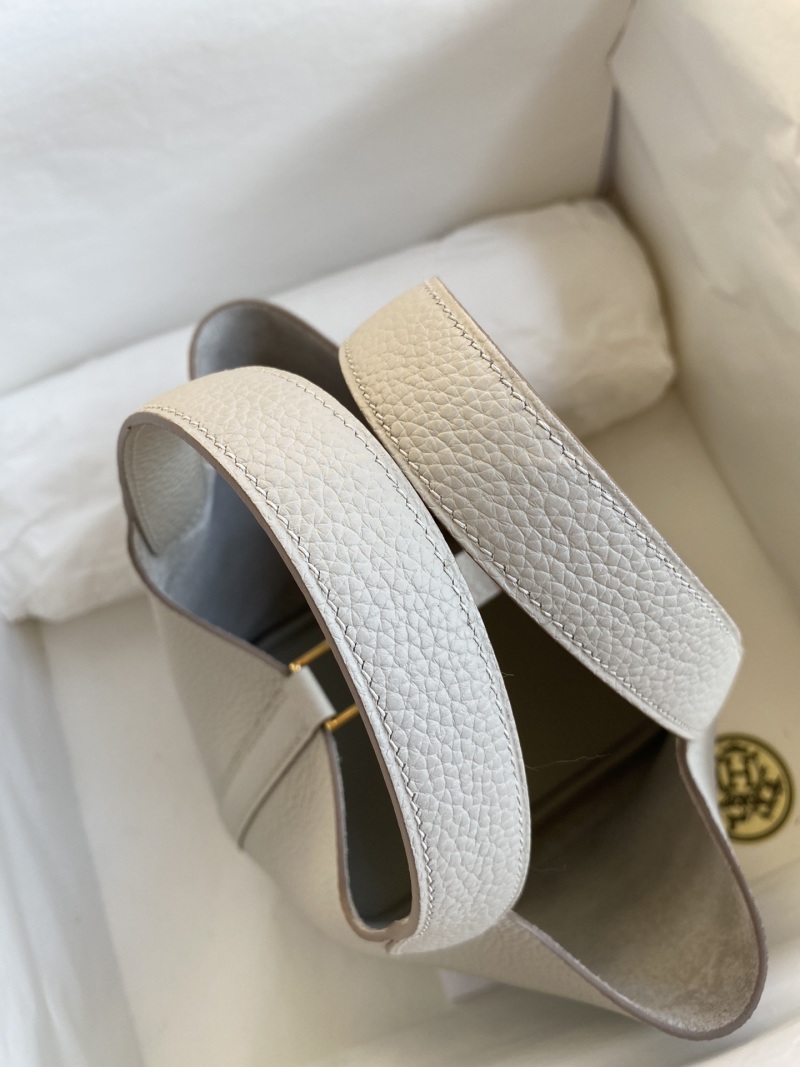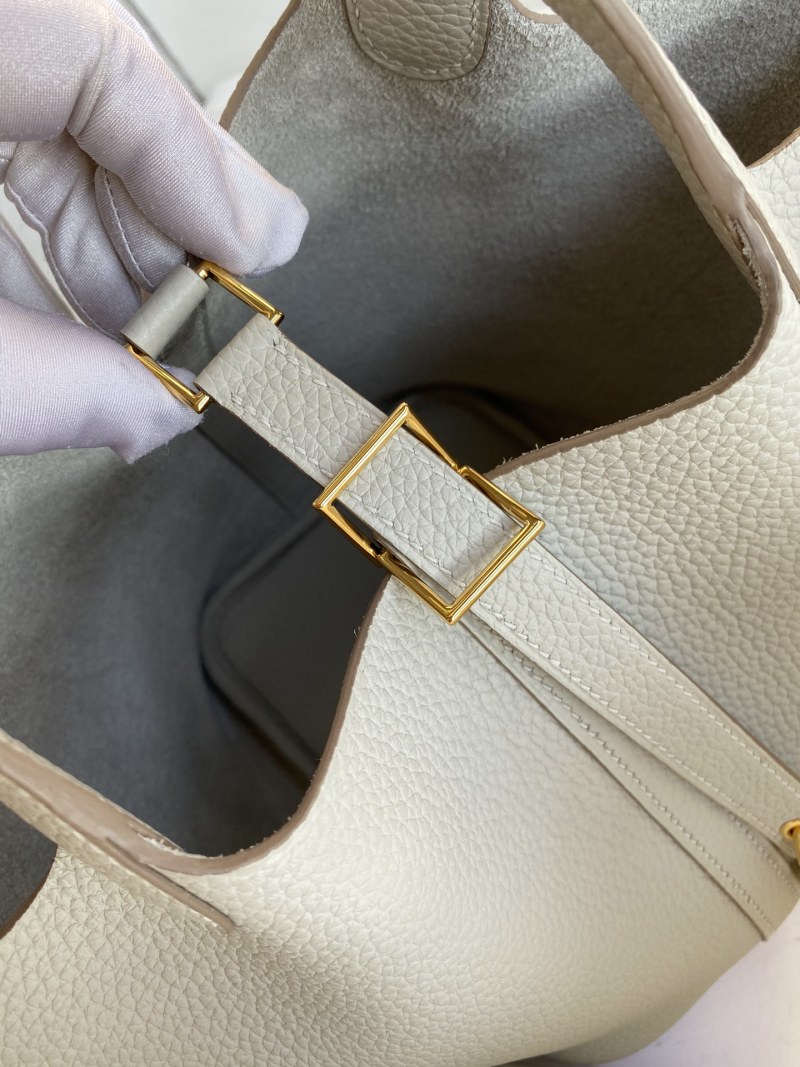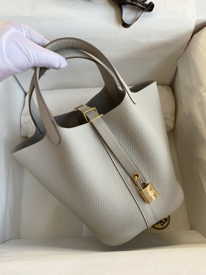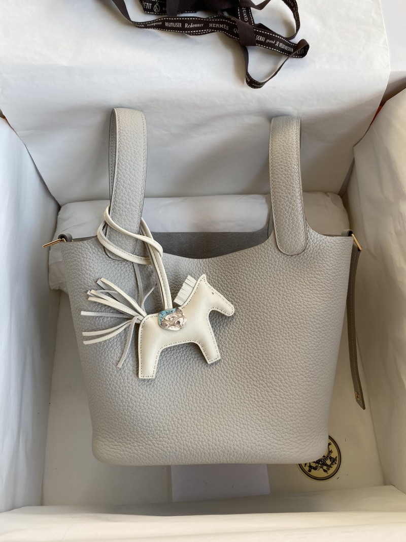 Handmade Basket Picotin...18cm Imported Taurillon Clemence Leather Pearl Grey with Gold Buckle