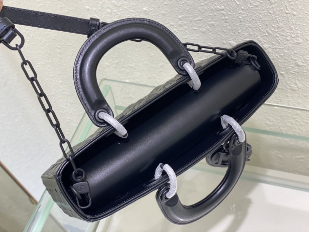 The Lady D-Joy handbag highlights the iconic minimalist aesthetics of the Lady Dior collection, embodying Dior's profound insight into grace and beauty. Exquisitely crafted from calfskin leather and adorned with black calfskin diamond-patterned lattice, complemented by a matte gold metal "D.I.O.R." charm to elevate its sophistication, adding a touch of dynamism to its exquisite silhouette. Complete with a detachable chain shoulder strap and an adjustable, removable leather shoulder strap, the ha