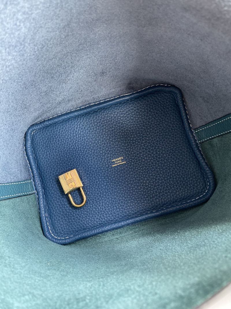Handmade Picotin...18cm Basket Bag in Imported Taurillon Clemence Leather W0 with Bosphorus Green and Deep Blue S4 Contrast and Gold Buckle
