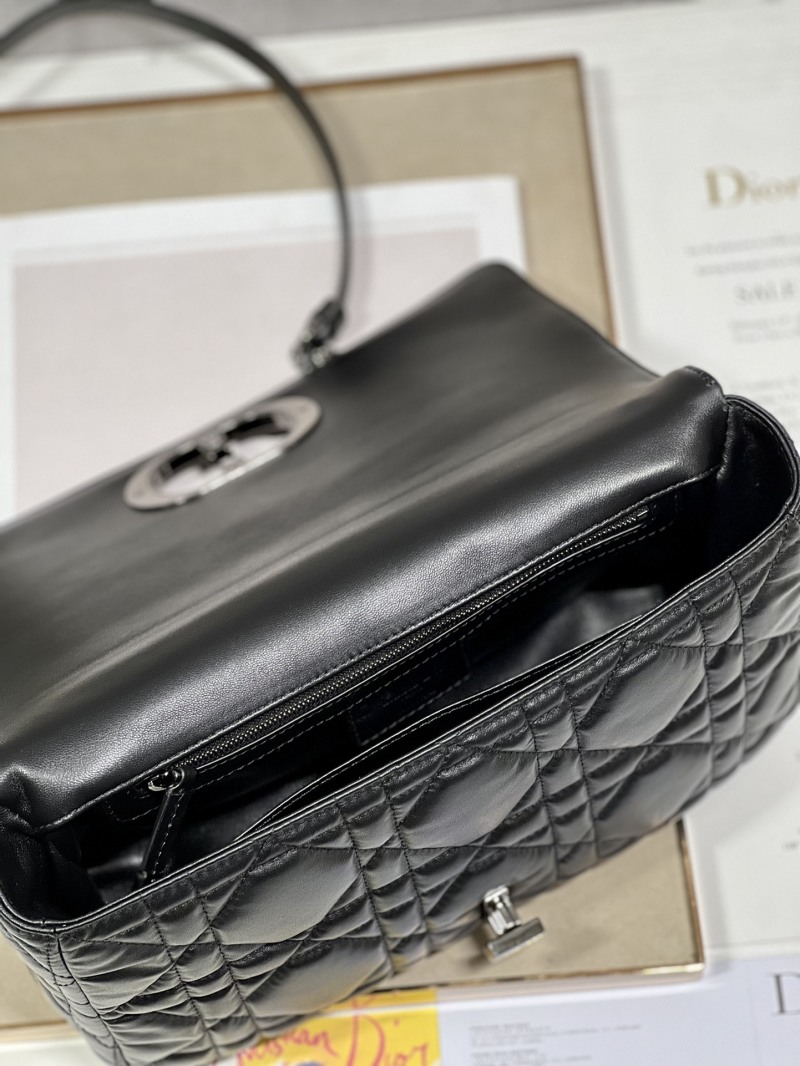 The CD Home's classic bestseller Caro handbag is crafted from high-quality embossed calf leather with a luxurious large rattan pattern. The interior is lined with soft sheepskin and features a flap adorned with gunmetal 'CD' buckle. It comes with a detachable chain shoulder strap and a replaceable embroidered wide shoulder strap. Model number: M9243, Size: 28×17×9cm.