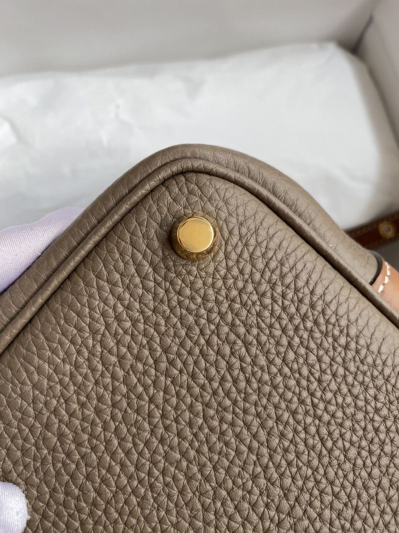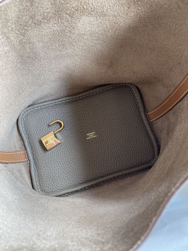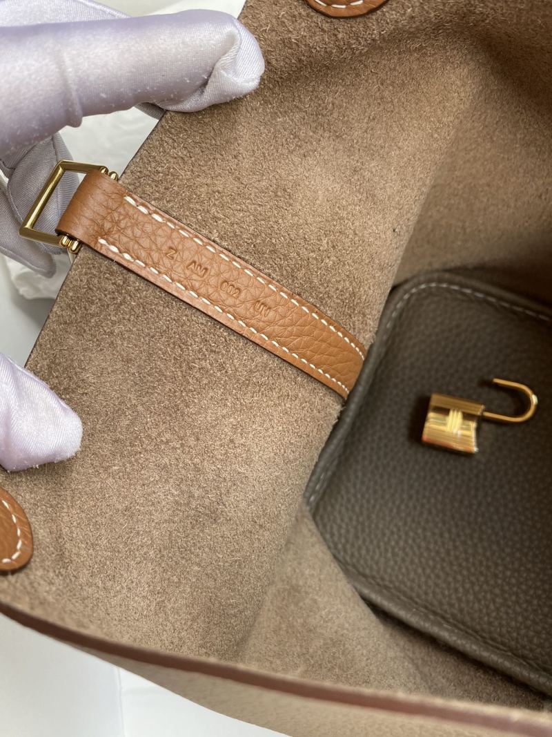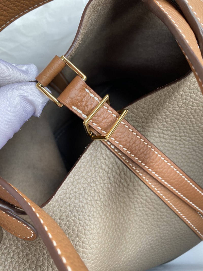 handmade Picotin...18cm basket in imported Taurillon Clemence leather in elephant grey with gold and brown accents