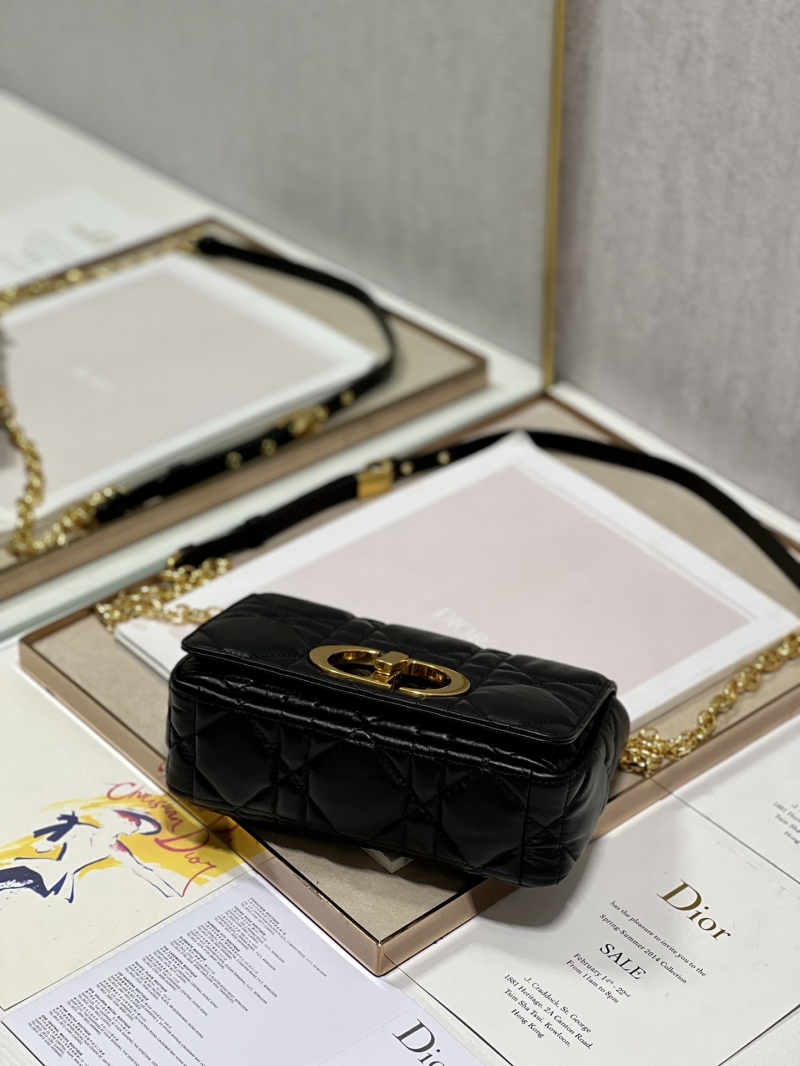 The small size CD House classic bestseller Caro handbag features a black gold buckle, genuine cowhide leather with a large wicker pattern on the exterior and sheepskin lining on the interior. The flap is adorned with a gunmetal 'CD' buckle and comes with a detachable chain shoulder strap that can be replaced with an embroidered wide shoulder strap. Model number: M9241, Size: 20×12×7cm.