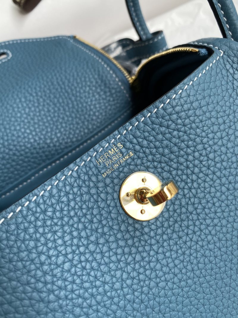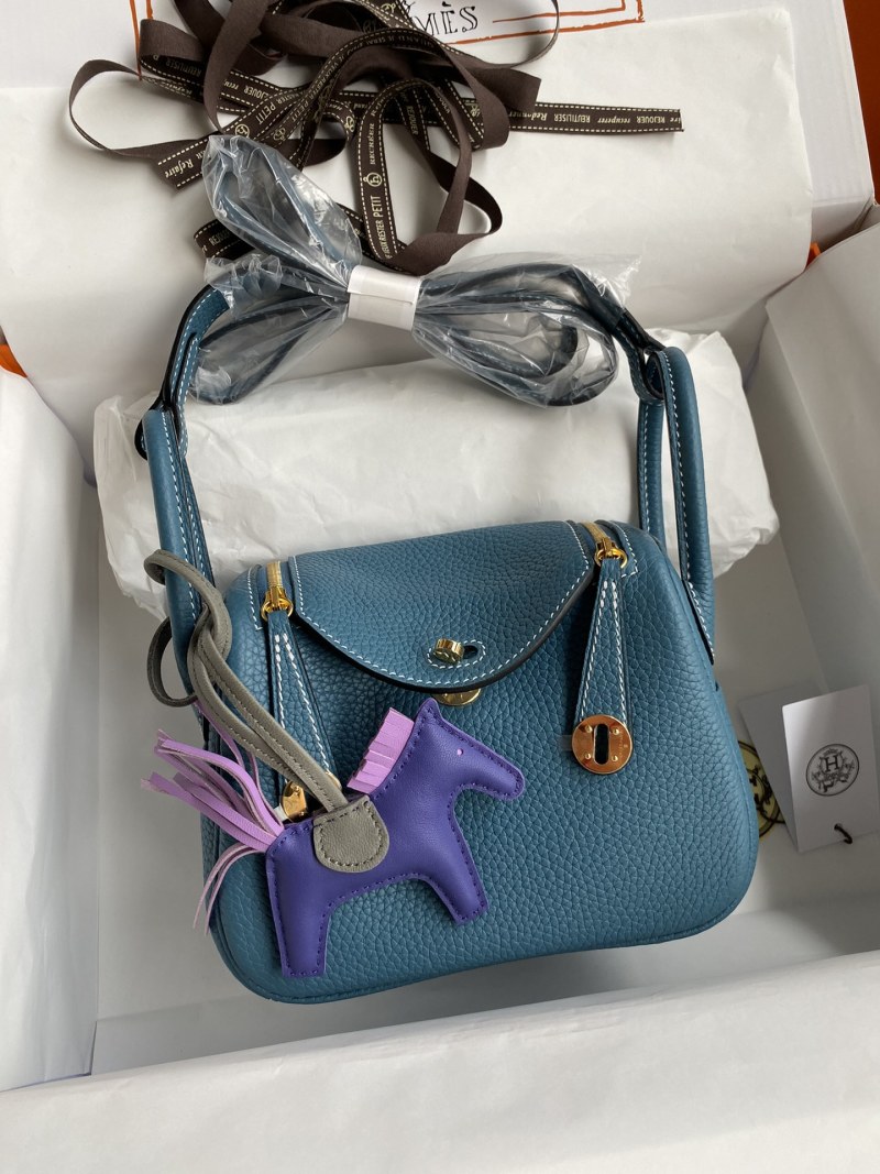 Handcrafted Mini Lindy 19cm Imported TC Leather in Denim Blue with Gold Buckle – A Must-have for Every Fashionista