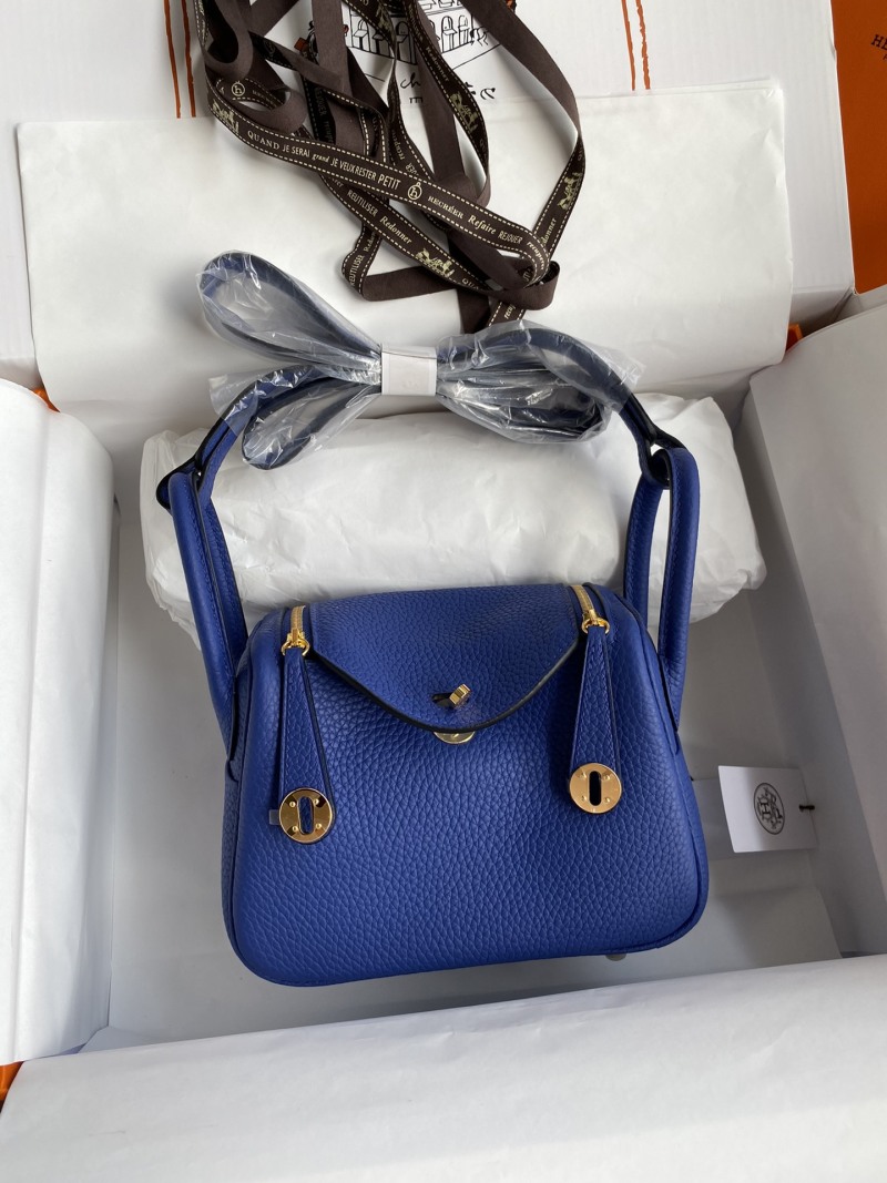 Hand-sewn Mini Lindy 19cm Imported TC Leather in Electric Blue with Gold Buckle - A Must-Have for Every Fashionista