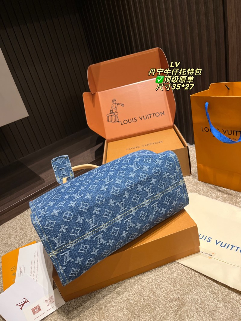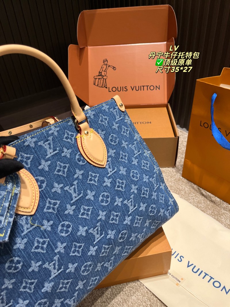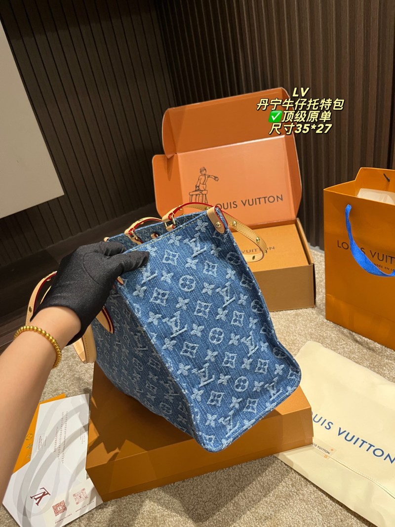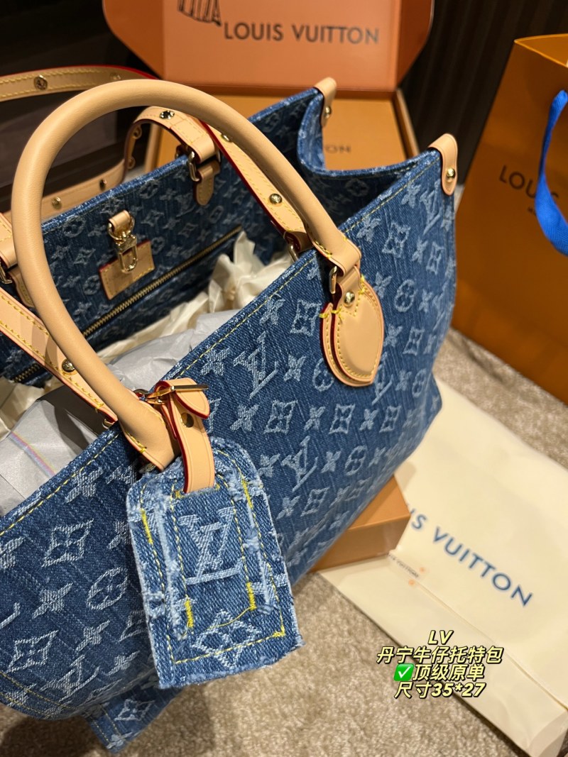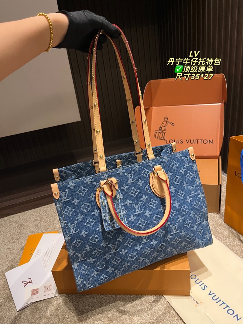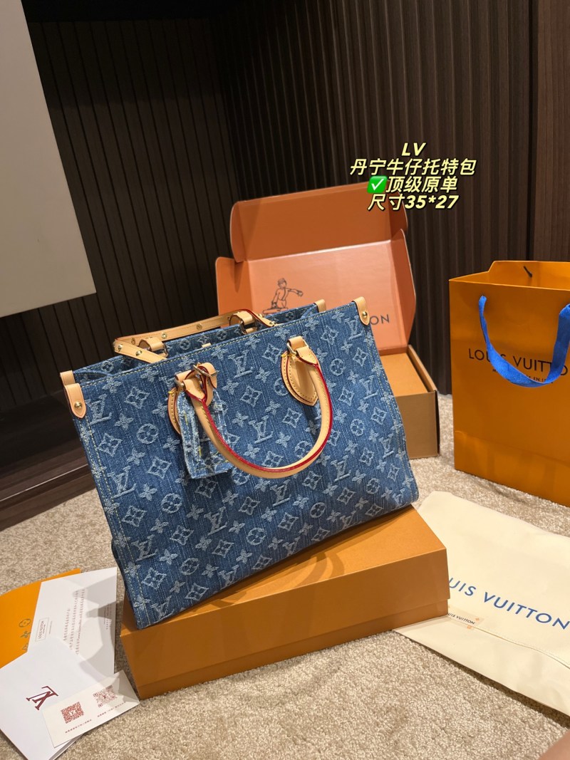 LV OnTheGo MM Denim Tote Bag with Folding Box