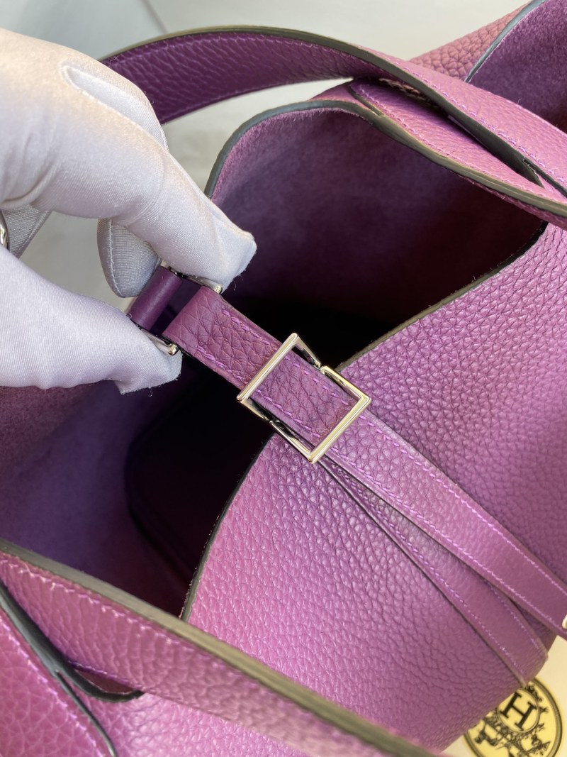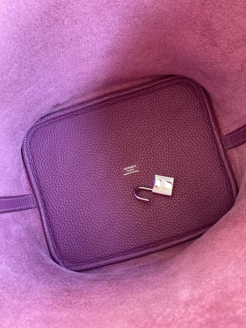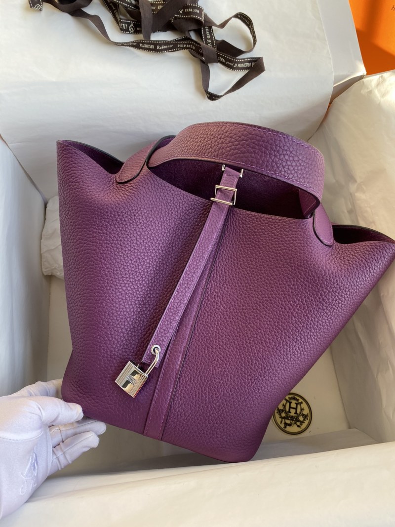 Hand-stitched Picotin...22cm Imported Taurillon Clemence Leather in Seaweed Purple with Silver Clasp
