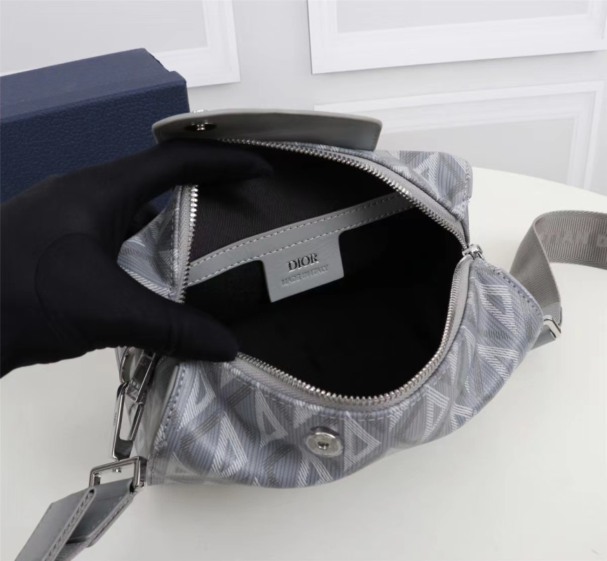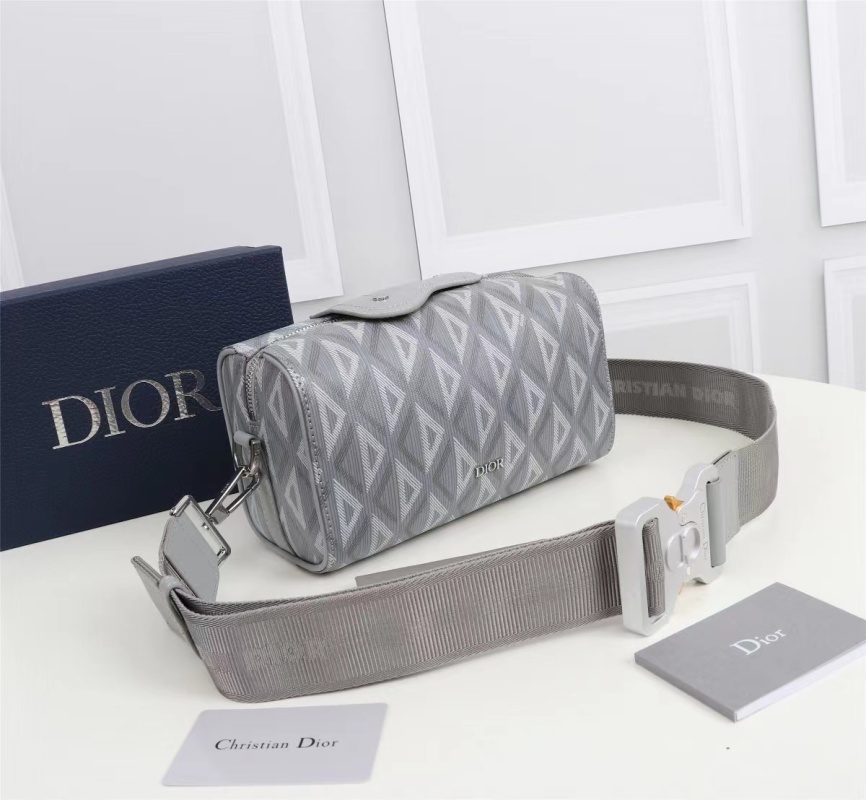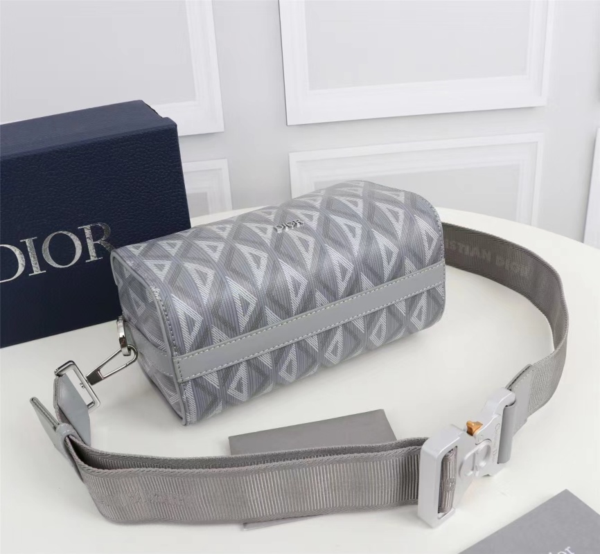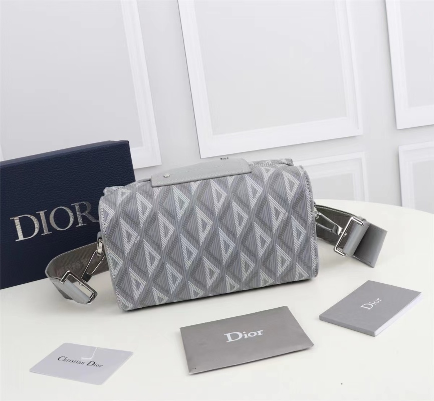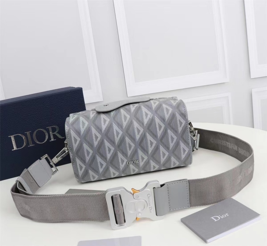 The Dio Lingot 22 handbag showcases Dio's modern style with its unique and practical design. Featuring a distinct silhouette, it is meticulously crafted from Dio Grey CD Diamond patterned canvas, inspired by Dio's archives. The handbag includes a zippered compartment and a smooth leather saddle flap, perfect for storing everyday essentials. It comes with an adjustable and detachable shoulder strap with aluminum buckles, allowing for handheld, shoulder, or crossbody wear. Model: 1ADPO249 (Black s