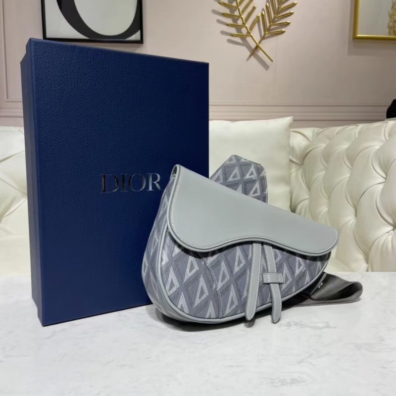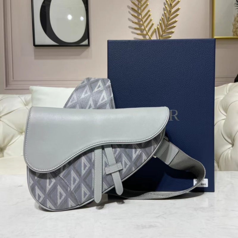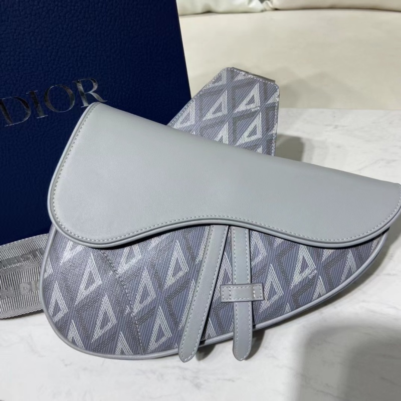 Dior Gray Canvas Saddle Bag with CD Diamond Pattern
