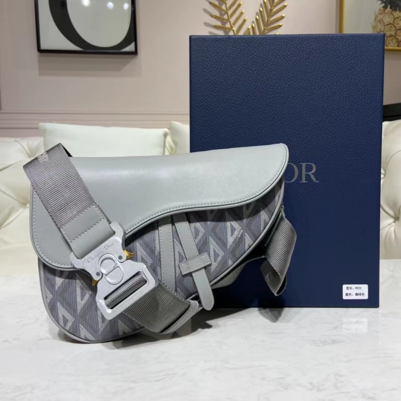 The 9922 saddle bag reinterprets the classic silhouette with a new Dior Gray canvas featuring the CD Diamond pattern inspired by Dior archives. Crafted with gray grained calfskin, a magnetic flap closure, and a hidden zip pocket, this bag provides secure storage for daily essentials. It comes with an adjustable "CHRISTIAN DIOR" jacquard shoulder strap for versatile styling. The CD Diamond pattern, designed by Marc Bohan in 1974, showcases a diamond-shaped reinterpretation of the "CD" initials on