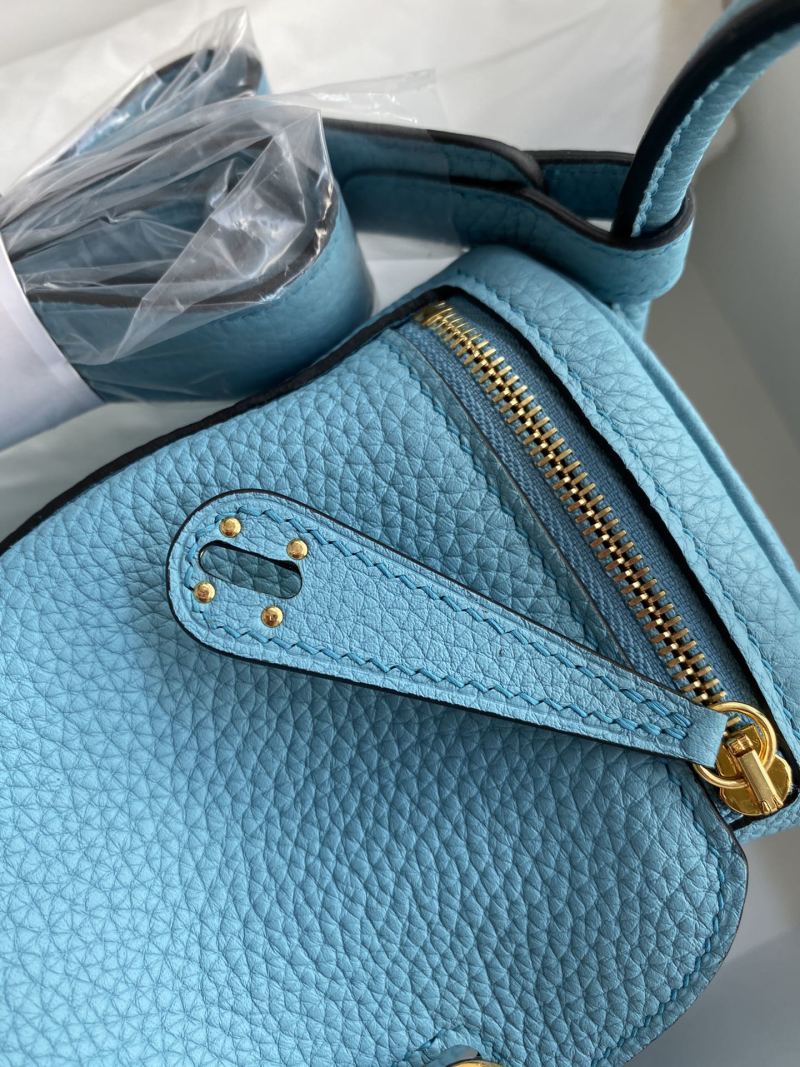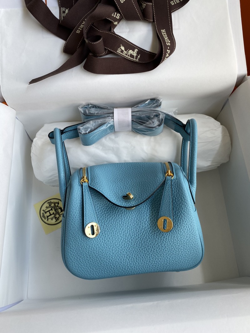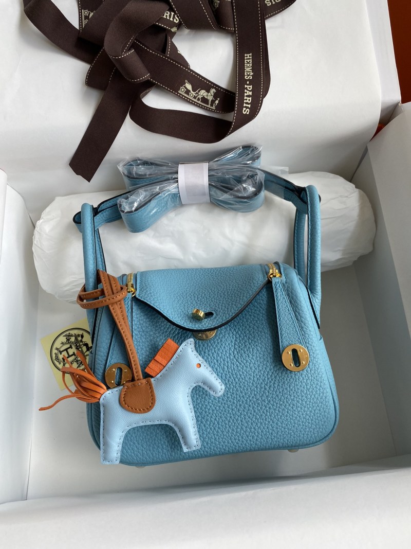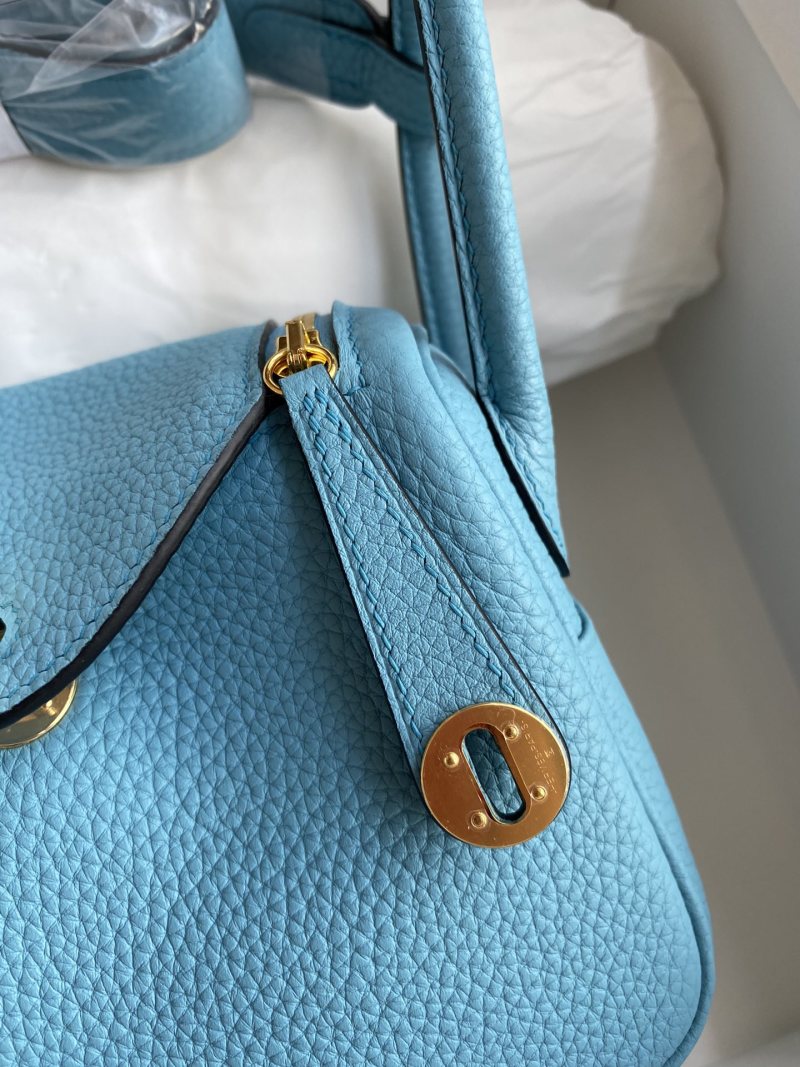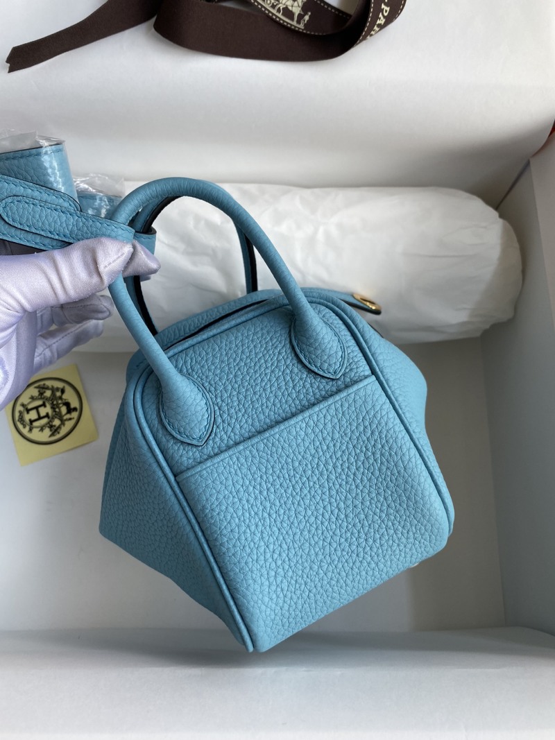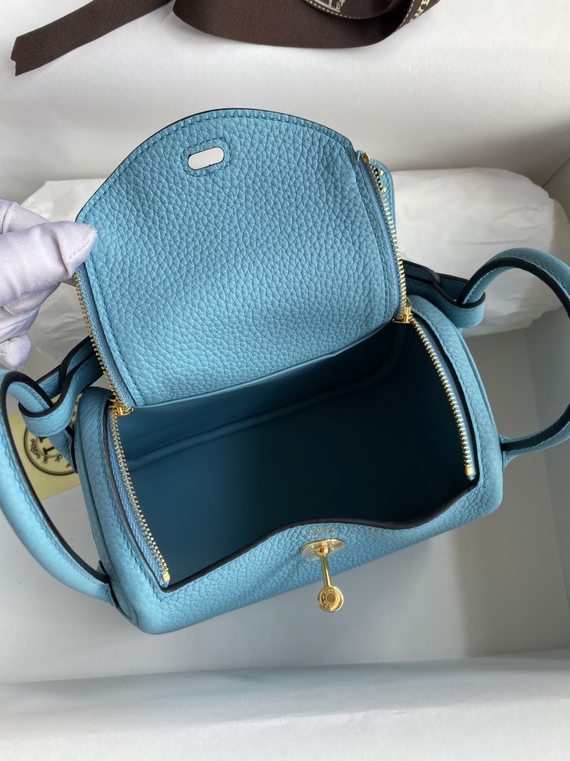 This hand-sewn Mini Lindy 19cm bag in imported TC leather is sure to elevate your style. Featuring a stunning Northern Blue color with a luxurious gold buckle, this accessory is a must-have for any fashion enthusiast. Perfect for everyday use, this bag is both practical and stylish, making it an essential addition to your wardrobe.