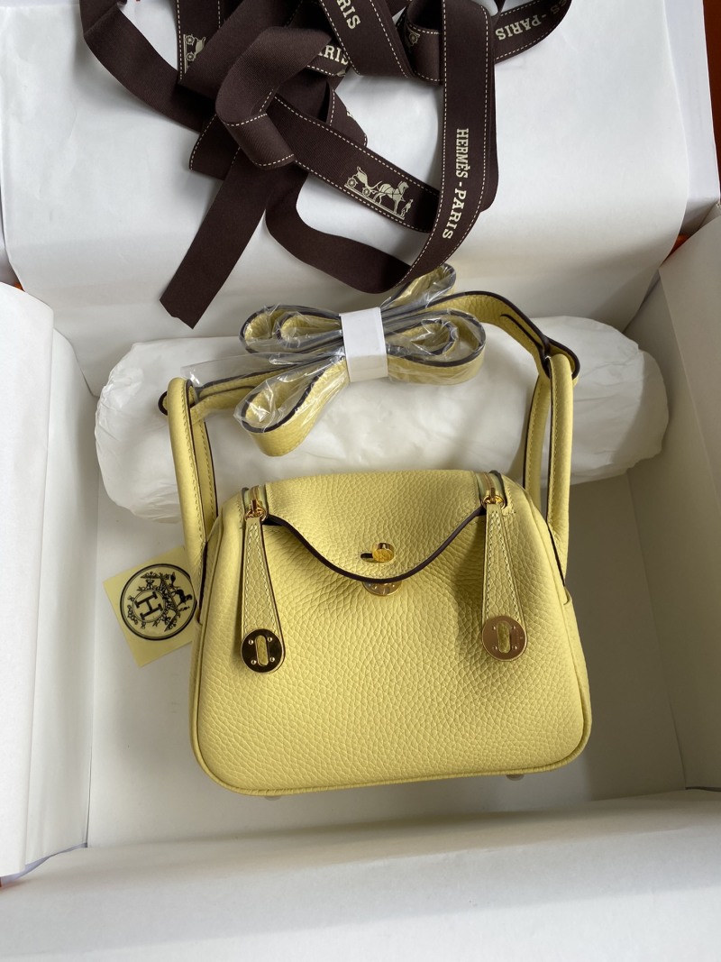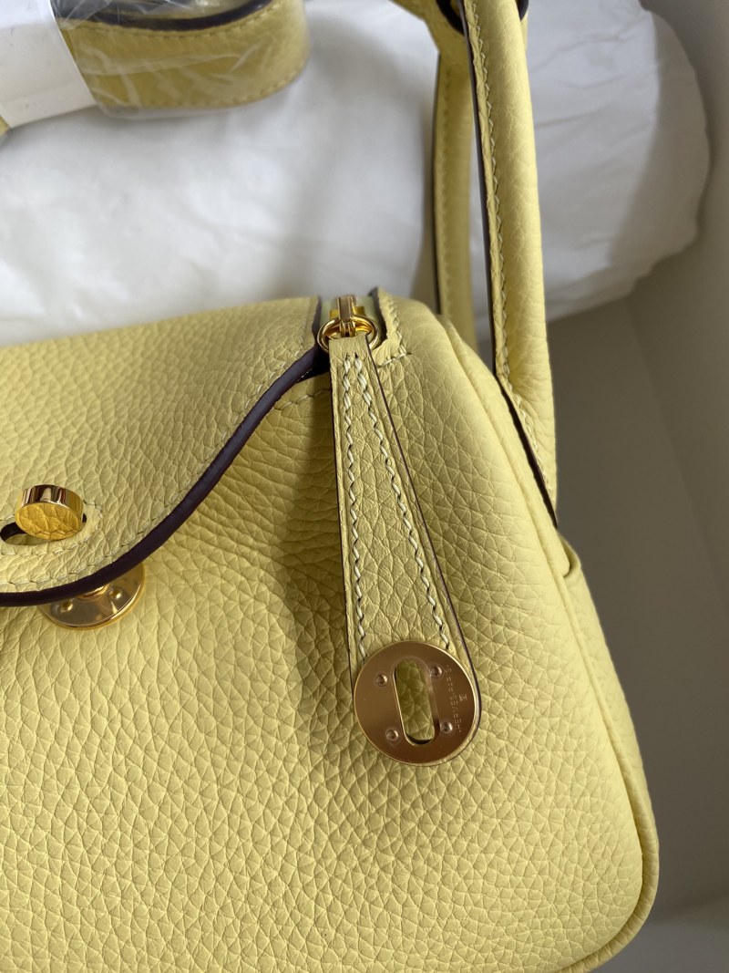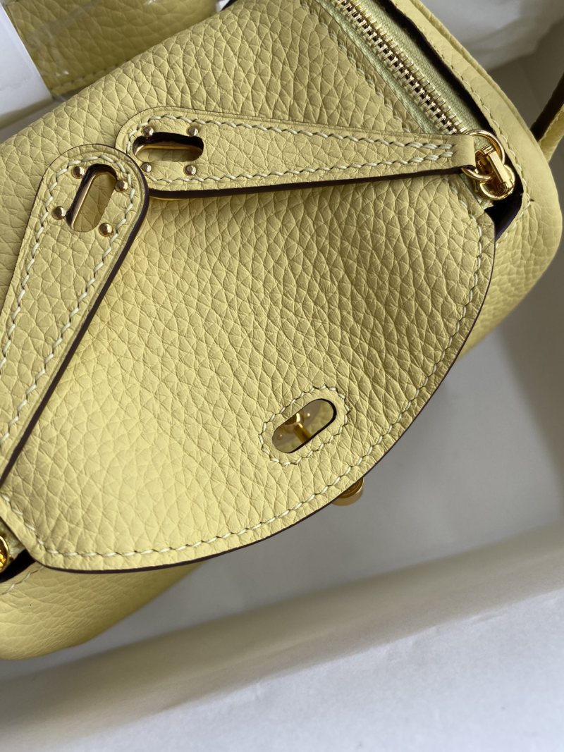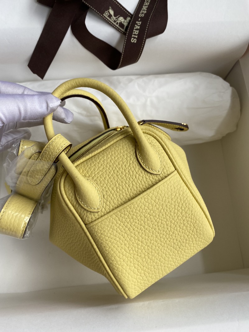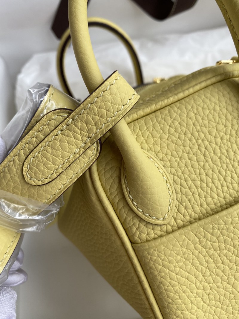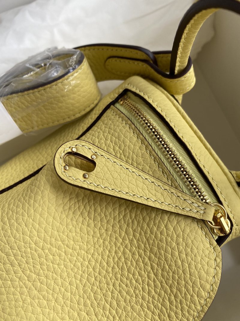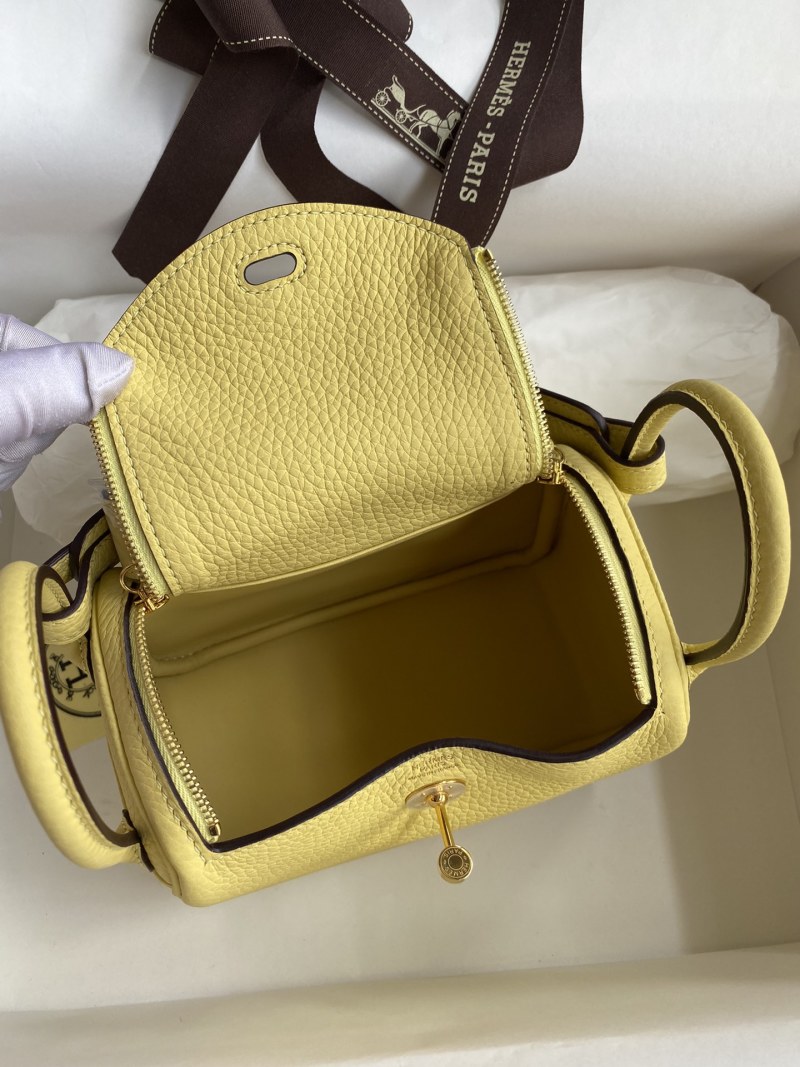 Hand-sewn Mini Lindy 19cm Imported TC Leather in Chick Yellow with Gold Buckle - A Must-Have for Every Fashionista