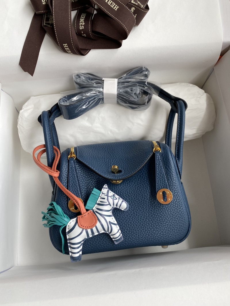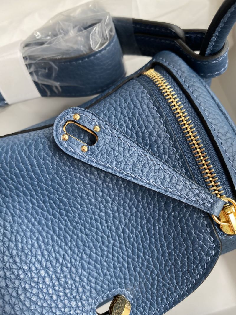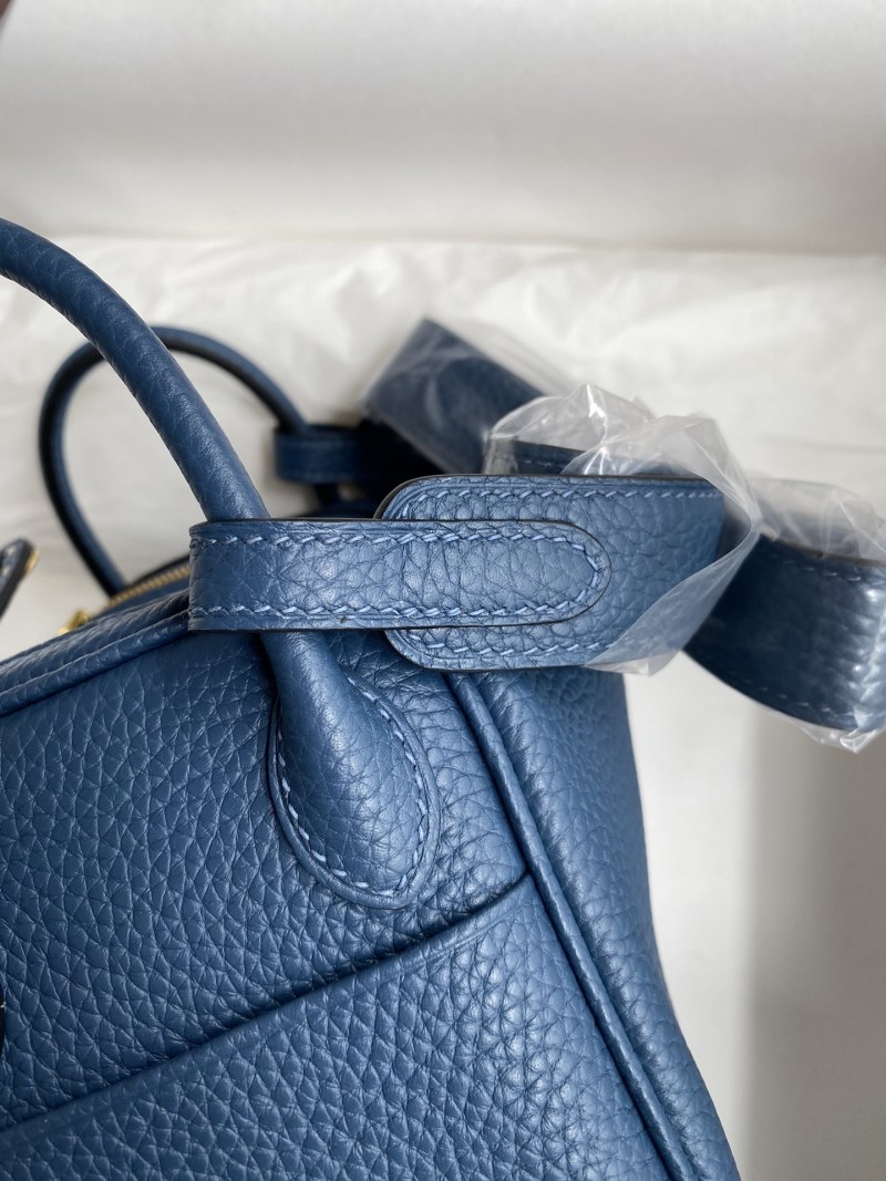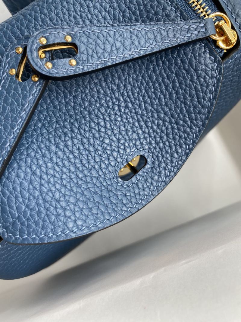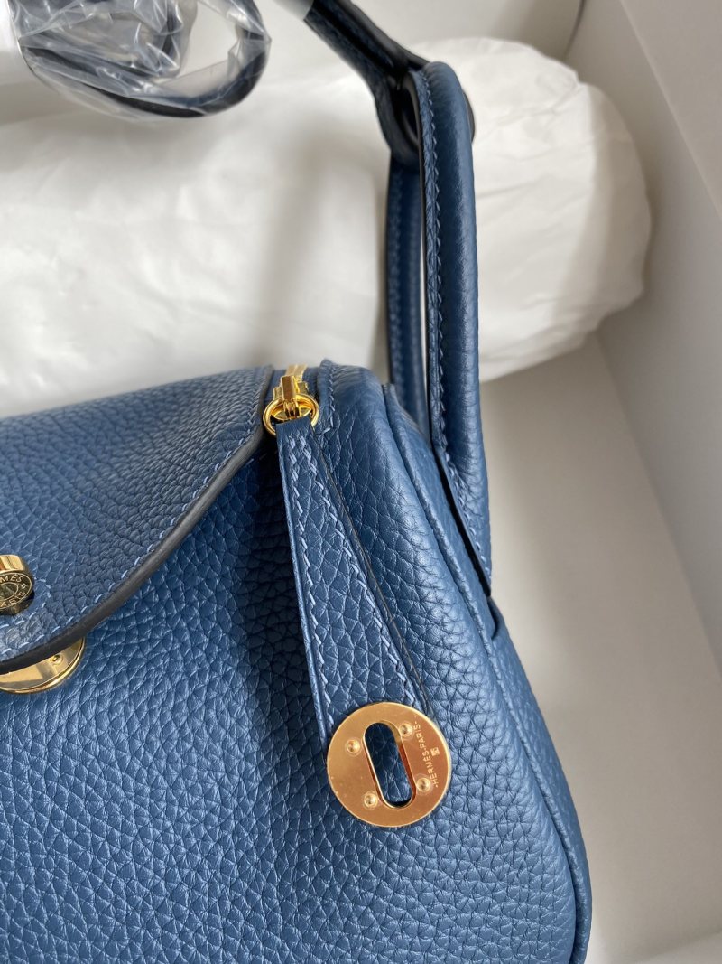 Half hand-sewn👉Mini Lindy 19cm Imported TC Leather Deep Blue Gold Buckle🔥🔥 Must-have for everyone