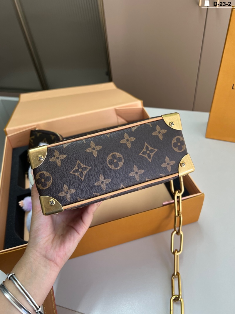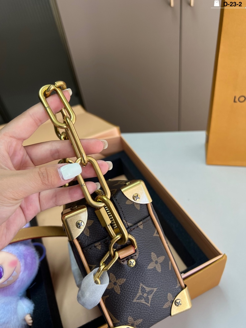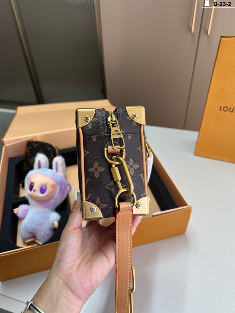 Enhance your accessory collection with this stylish LV Mini Soft Trunk Handbag Set, complete with a LABUBU pendant. The set includes a card holder and a folding box, all in a convenient size of 18×12. The pendant color is randomly selected, adding a fun element to your fashionable ensemble. Add a touch of luxury to your wardrobe with this versatile and elegant set.