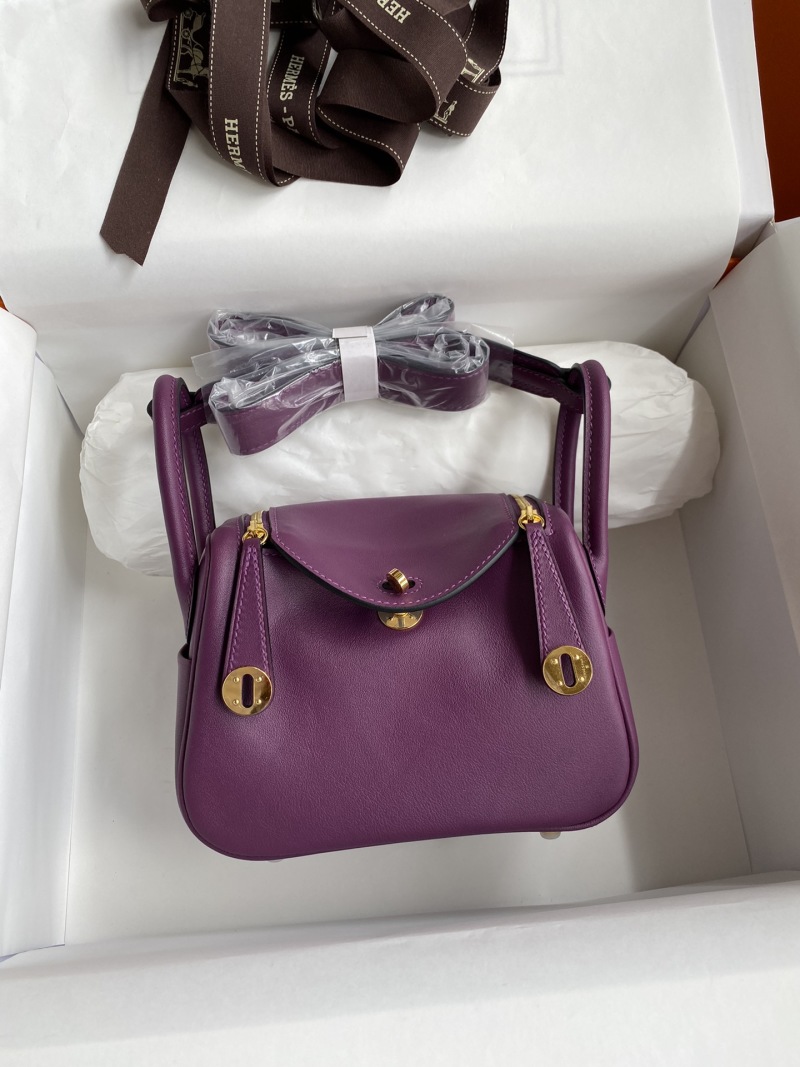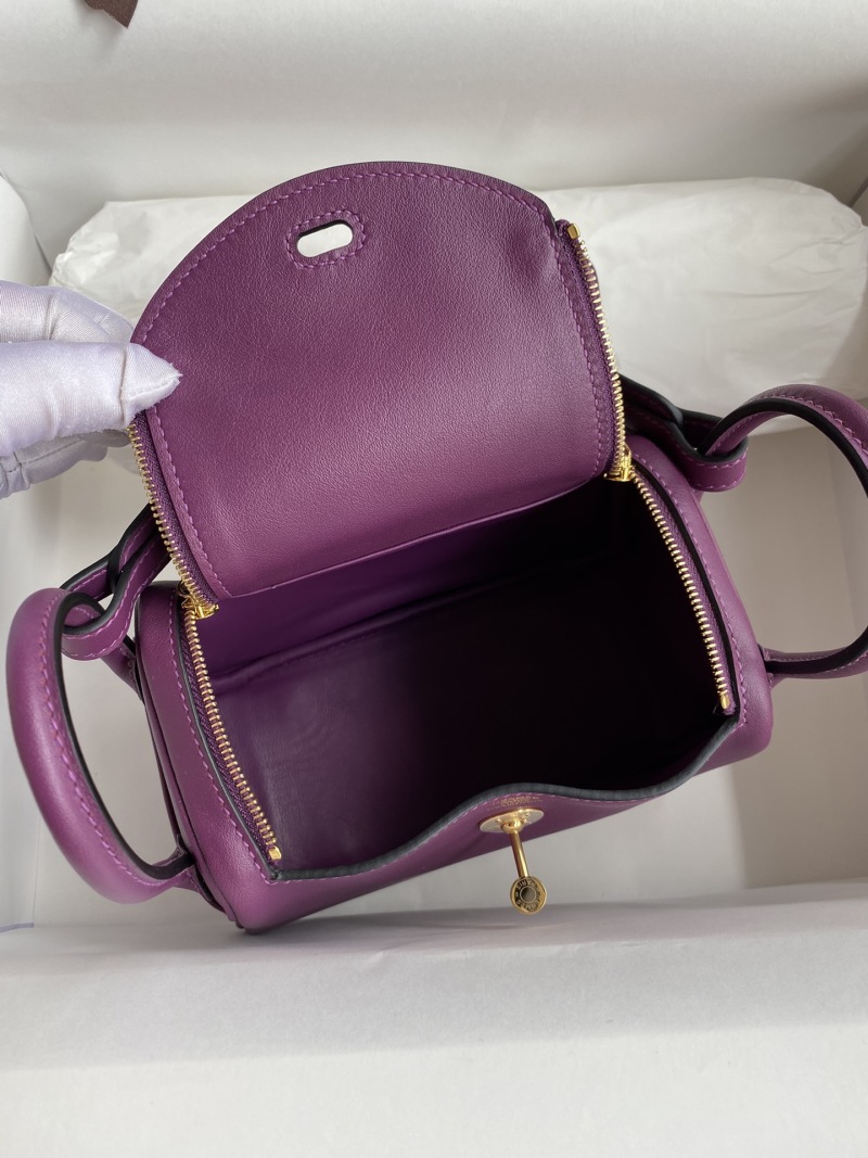 Hand-sewn Half👉Mini Lindy 19cm Imported Swift Leather Seaweed Purple with Gold Buckle