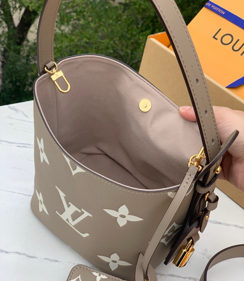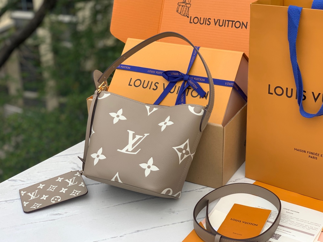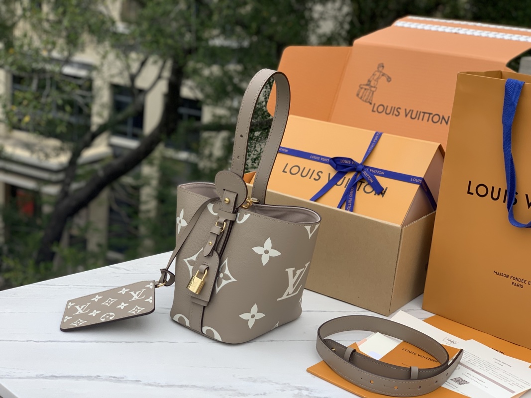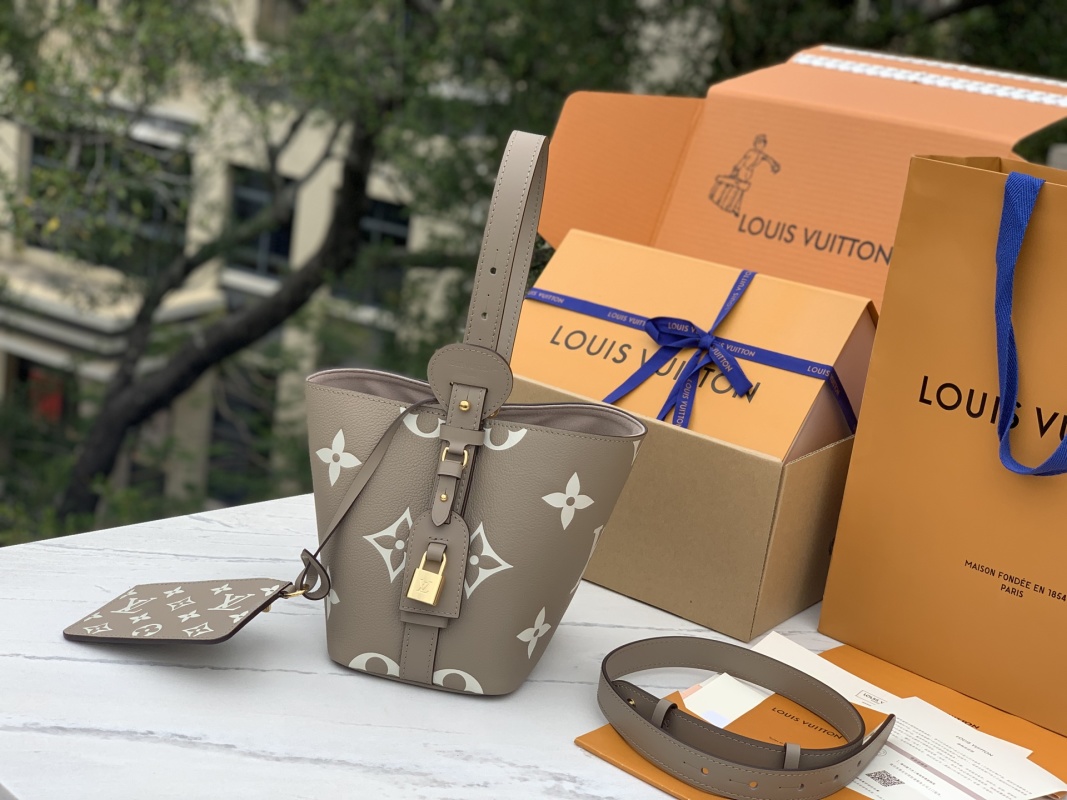 Dimensions: 18×12×16cm. This hot-selling LV All In BB Bucket Bag is a must-have for all the sisters out there! Available exclusively through Hong Kong channels, this bag is a real standout with its perfect combination of style and practicality. The classic monogram canvas paired with grey leather is chic and sophisticated, instantly elevating your look when you carry it on your shoulders. Despite its compact size, the bag offers surprisingly ample storage space for your essentials such as phone,