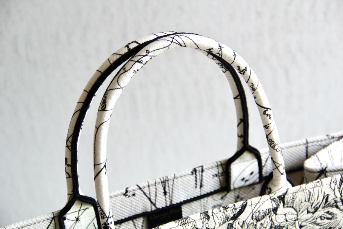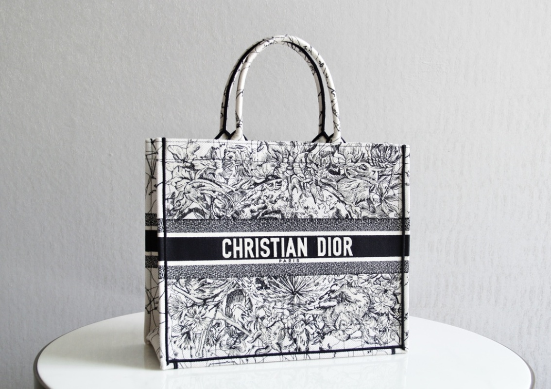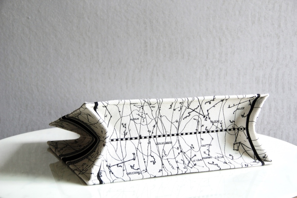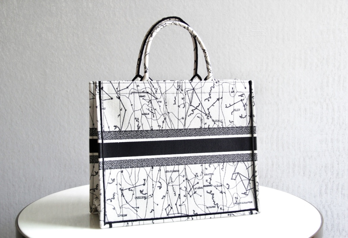 The Dior Book Tote is a versatile tote bag that can store various daily essentials, adorned with Zodiac patterns embroidery all over, showcasing a love for astrology. With impeccable craftsmanship, this bag can be carried by hand or on the shoulder. Available in two sizes, the large measures 41.5X34.5X16cm and the small measures 36.5X28X16cm.