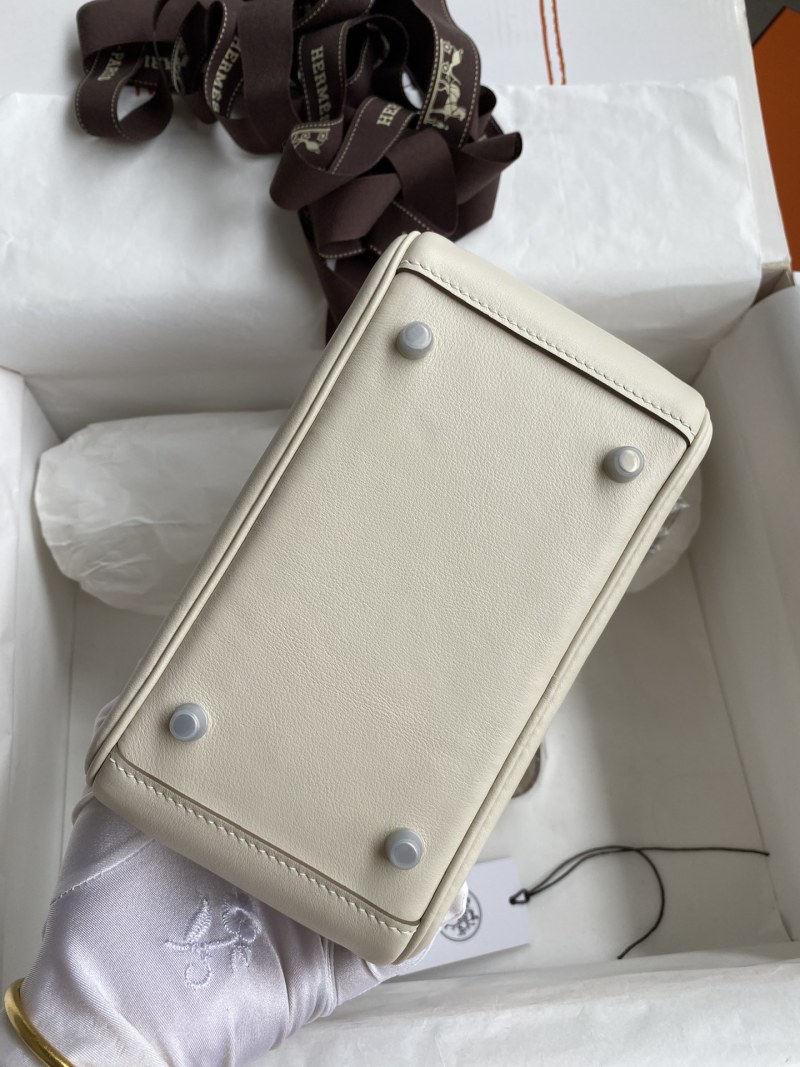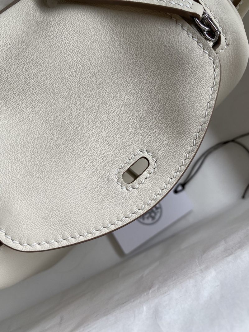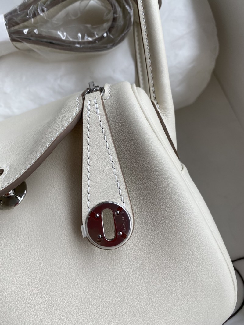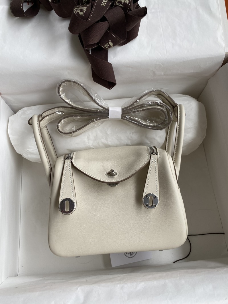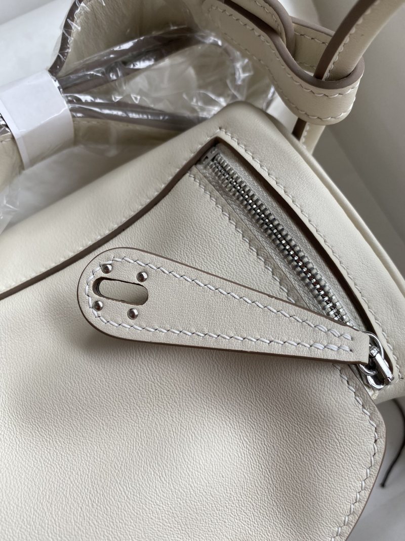 Hand-Stitched Mini Lindy 19cm Imported Swift Leather Bag in Milk Tea White with Gold Brown Interior and Silver Clasp