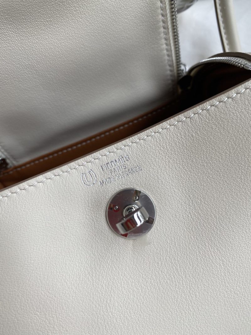 This elegant Mini Lindy 19cm bag is meticulously hand-stitched and made from high-quality imported Swift leather. The bag features a chic milk tea white exterior with a luxurious gold brown interior, perfectly complemented by a stylish silver clasp. Perfect for adding a touch of sophistication to any ensemble.
