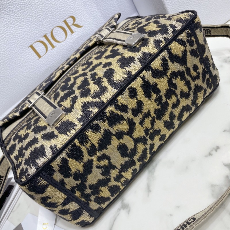 The Diorcamp handbag, designed by Maria Grazia Chiuri, is a carefully crafted interpretation of the classic messenger bag, featuring iconic Dior elements for a casual and modern look. Adorned with a beige Mizza pattern embroidery inspired by the leopard print from the Dior archives, the front is embellished with the "CHRISTIAN DIOR" logo. With its spacious and easy-to-carry design, this bag can be worn over the shoulder or crossbody, making it the perfect companion for everyday styling. Dimensio