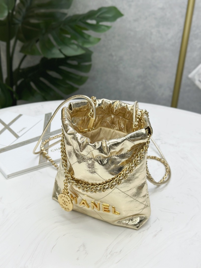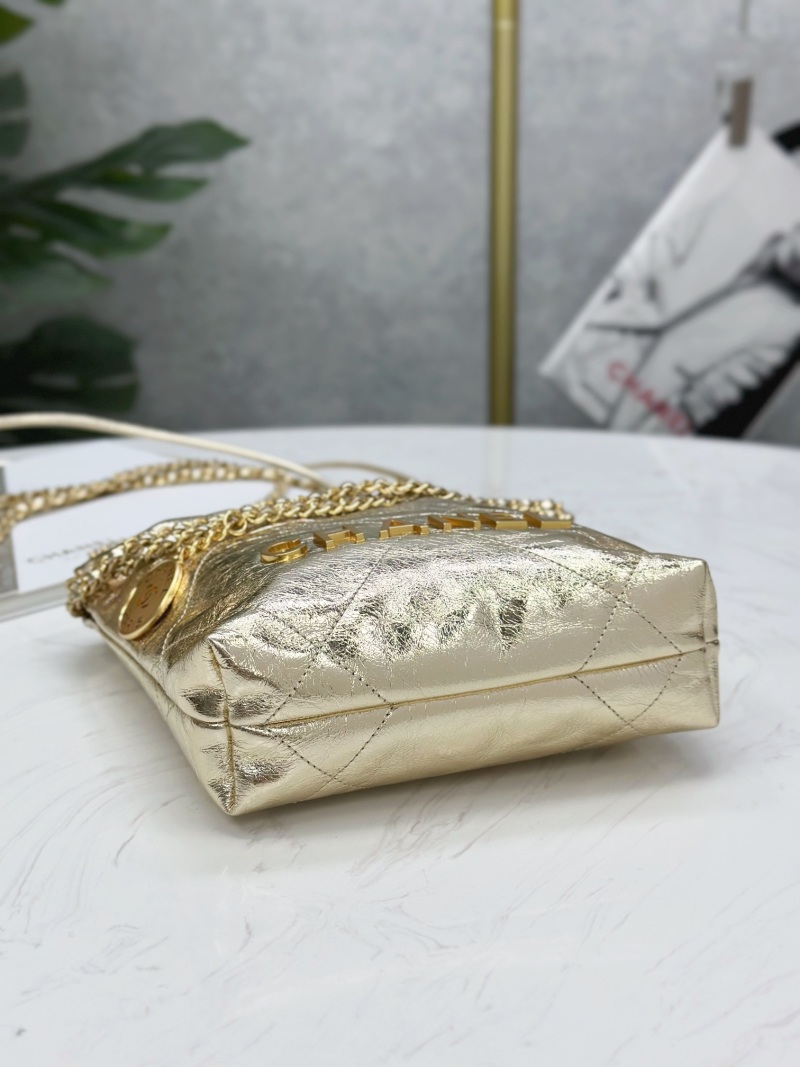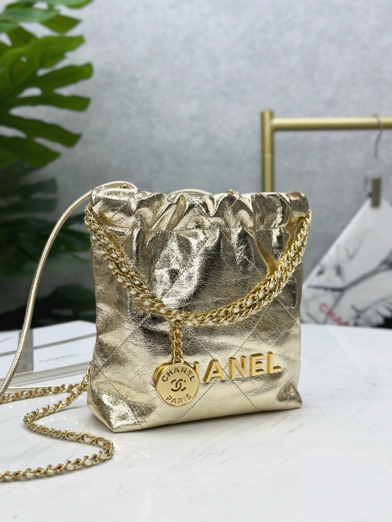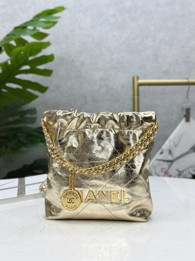 This new Chanel 25C metallic mini 22bag exudes unparalleled luxury and sophistication, making it irresistible to resist. With its intricate design and Chanel logo shining brightly, this bag is both luxurious and elegant. It is like a sparkling halo, making you the center of attention. Whether paired with formal attire or casual wear, this bag will be your ultimate fashion accessory. Size: 20*19*6cm/3980