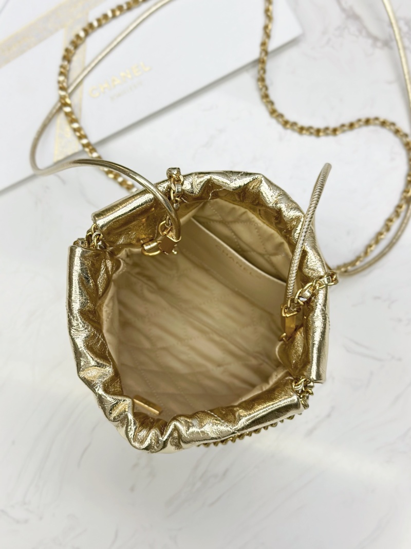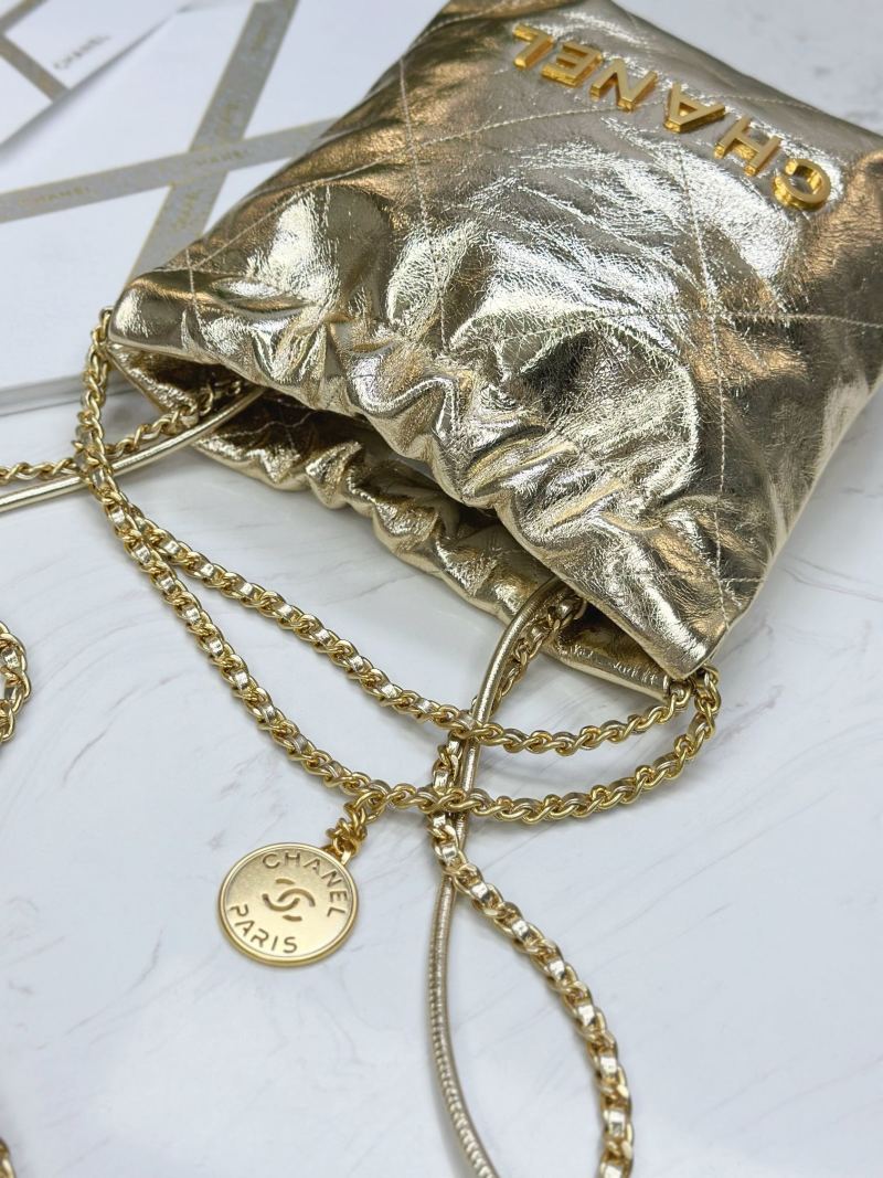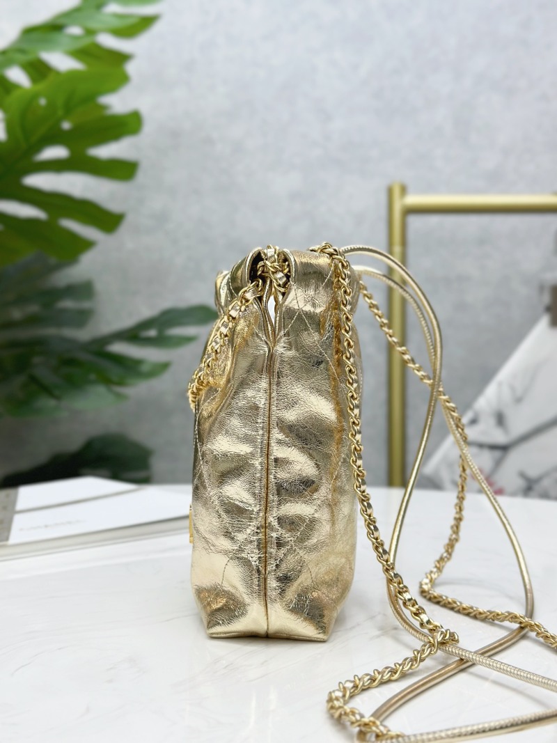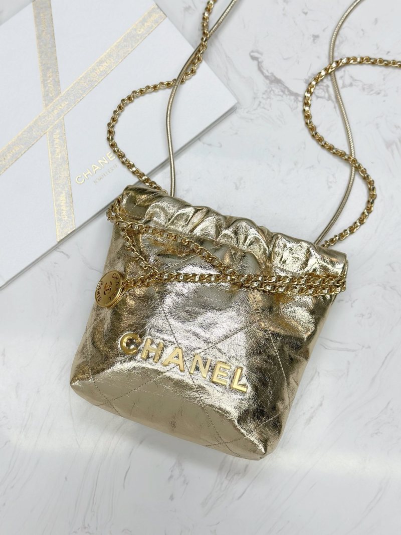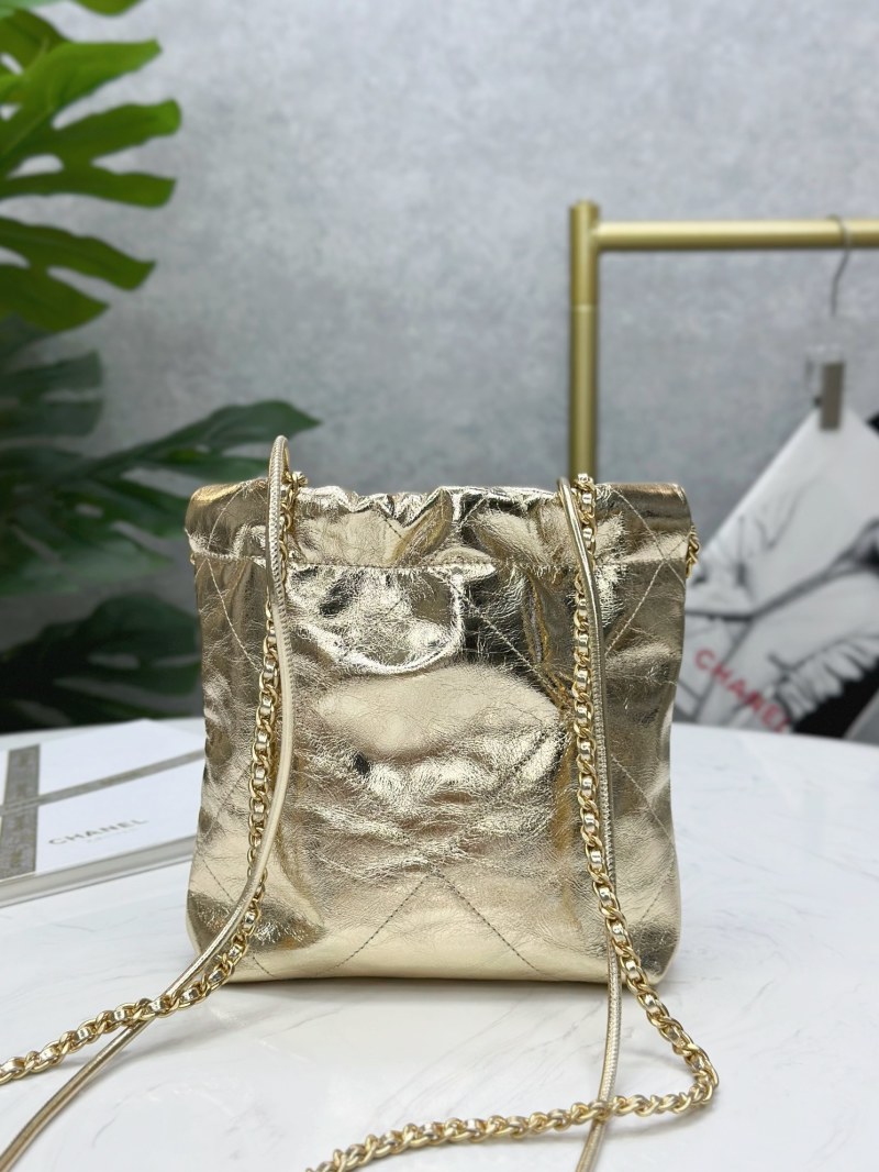 This new Chanel 25C metallic mini 22bag exudes unparalleled luxury and sophistication, making it irresistible to resist. With its intricate design and Chanel logo shining brightly, this bag is both luxurious and elegant. It is like a sparkling halo, making you the center of attention. Whether paired with formal attire or casual wear, this bag will be your ultimate fashion accessory. Size: 20*19*6cm/3980