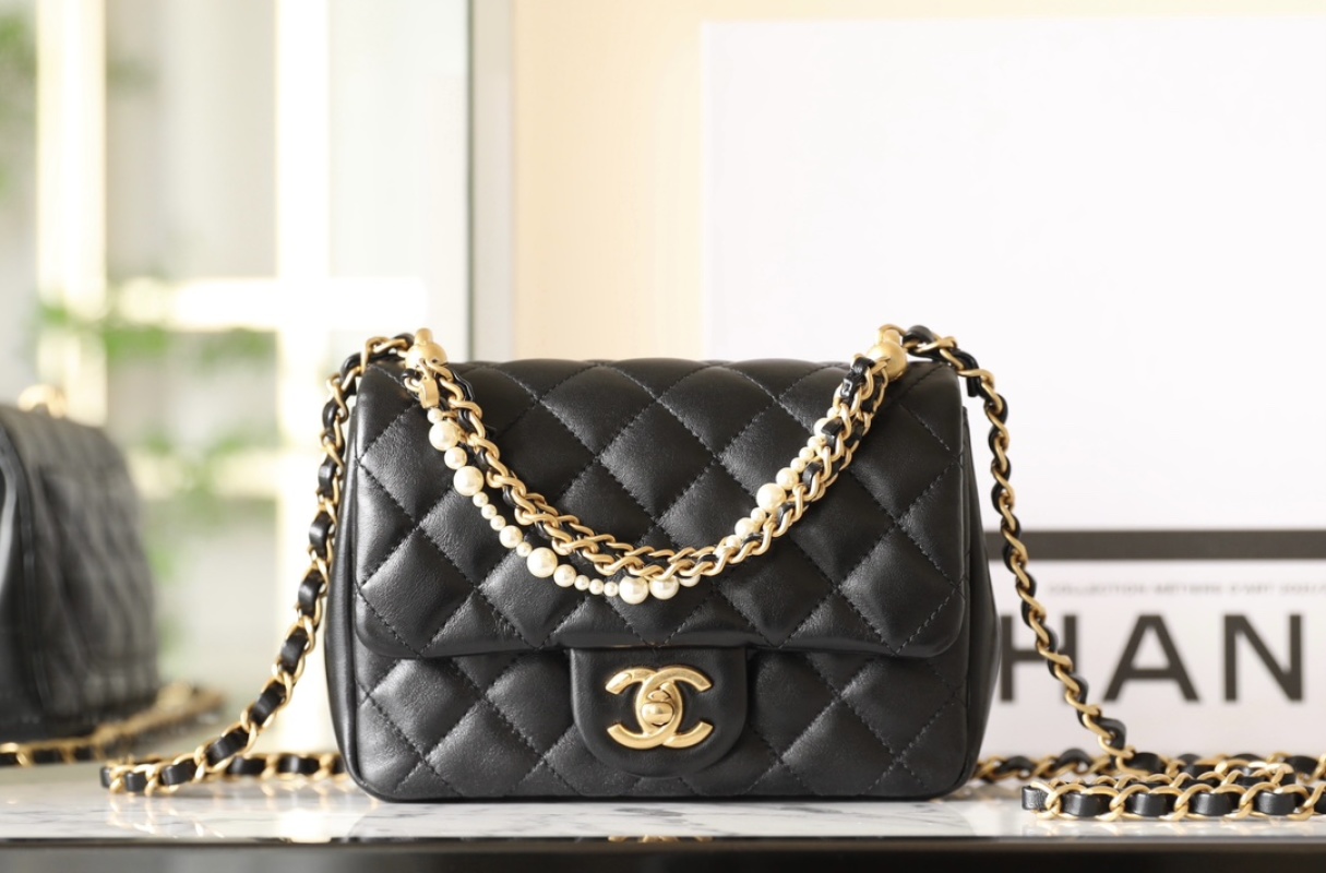 New Arrival of Authentic Chane1 24P Spring/Summer Pearl Chain Flap Bag