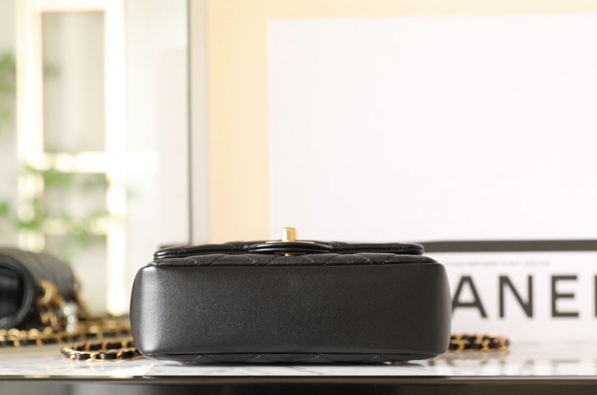 The Mini Square chubby with a pearl chain integration gives a more casual feel, whether carried or worn on the shoulder, it looks great. This bag is a collision between vintage trend and modern fashion, featuring 24K gold hardware and original small lambskin leather. Dimensions: 12.5*17*5 cm. Retail price is 42900 RMB.