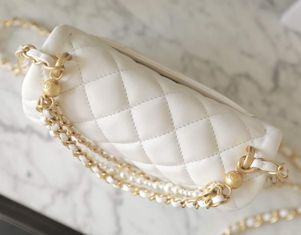 New Arrival of Authentic Chane1 24P Spring/Summer Pearl Chain Flap Bag in White