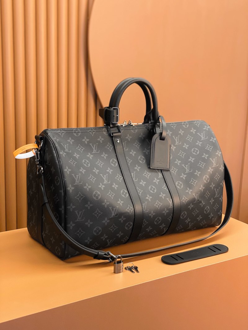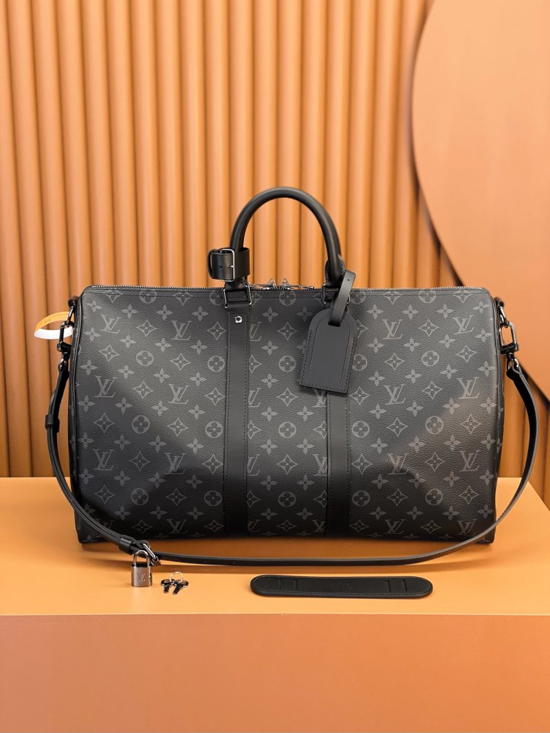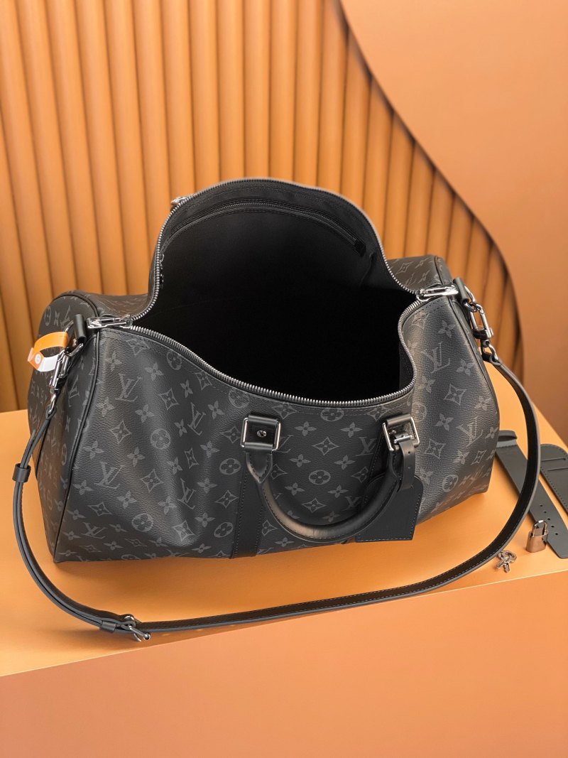 Deluxe KEEPALL BANDOULIÈRE 50 Travel Bag Model: M40569 Black Floral Material: Grade A Stainless Steel Hardware, Imported Factory Fabric Packaging: Full Set Original Duty-Free MB Packaging Size