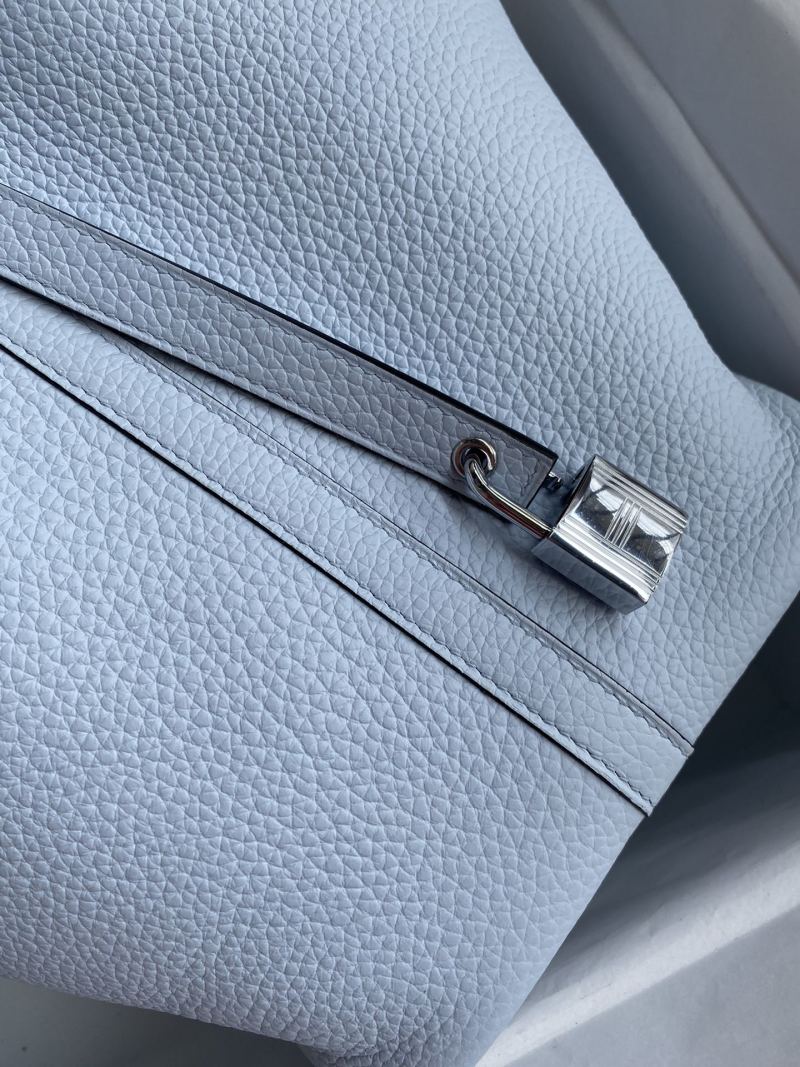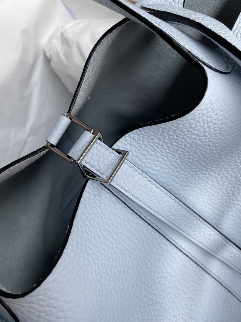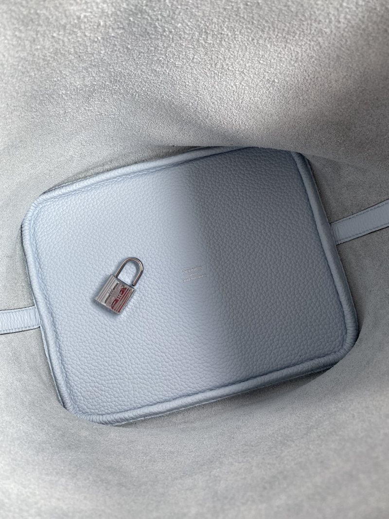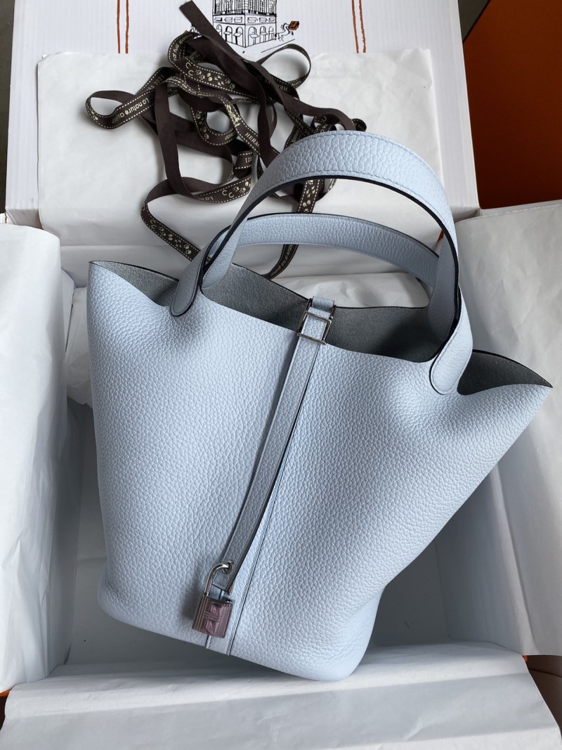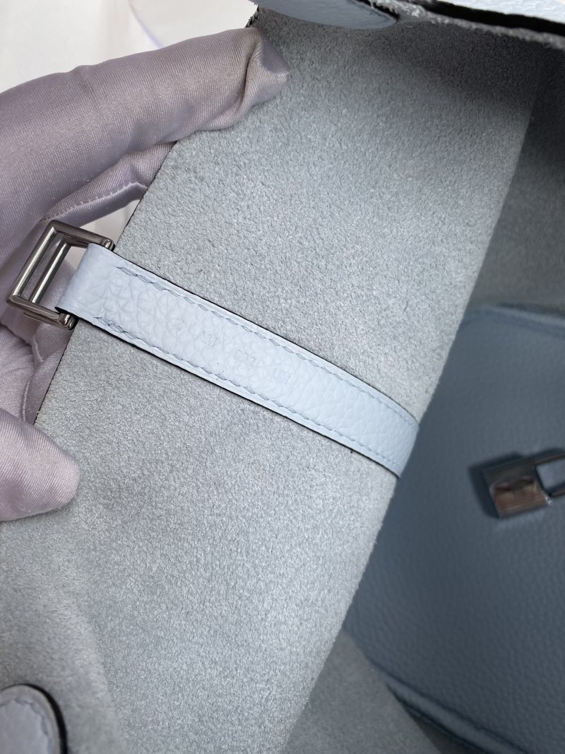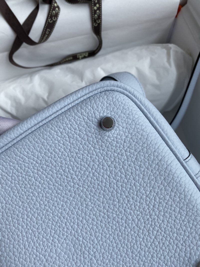 Elevate your accessories collection with this hand-stitched Picotin basket bag, crafted from imported Taurillon Clemence leather in a stunning holy grail blue color. The bag features a 22cm size and is accented with a sleek silver buckle for a touch of elegance. Perfect for carrying your essentials in style.