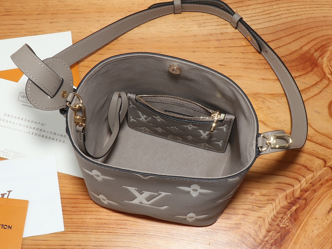 The All In BB Bag – Enhanced Edition fuses modern design with an elegant silhouette and generous interior space. Crafted from Monogram Empreinte leather, its minimalist bucket structure is accented with the signature logo and metal padlock, highlighting refined details. An adjustable handle pays homage to the brand’s trunk-making heritage. Size: 18 × 12 × 16 cm (H × W × L)