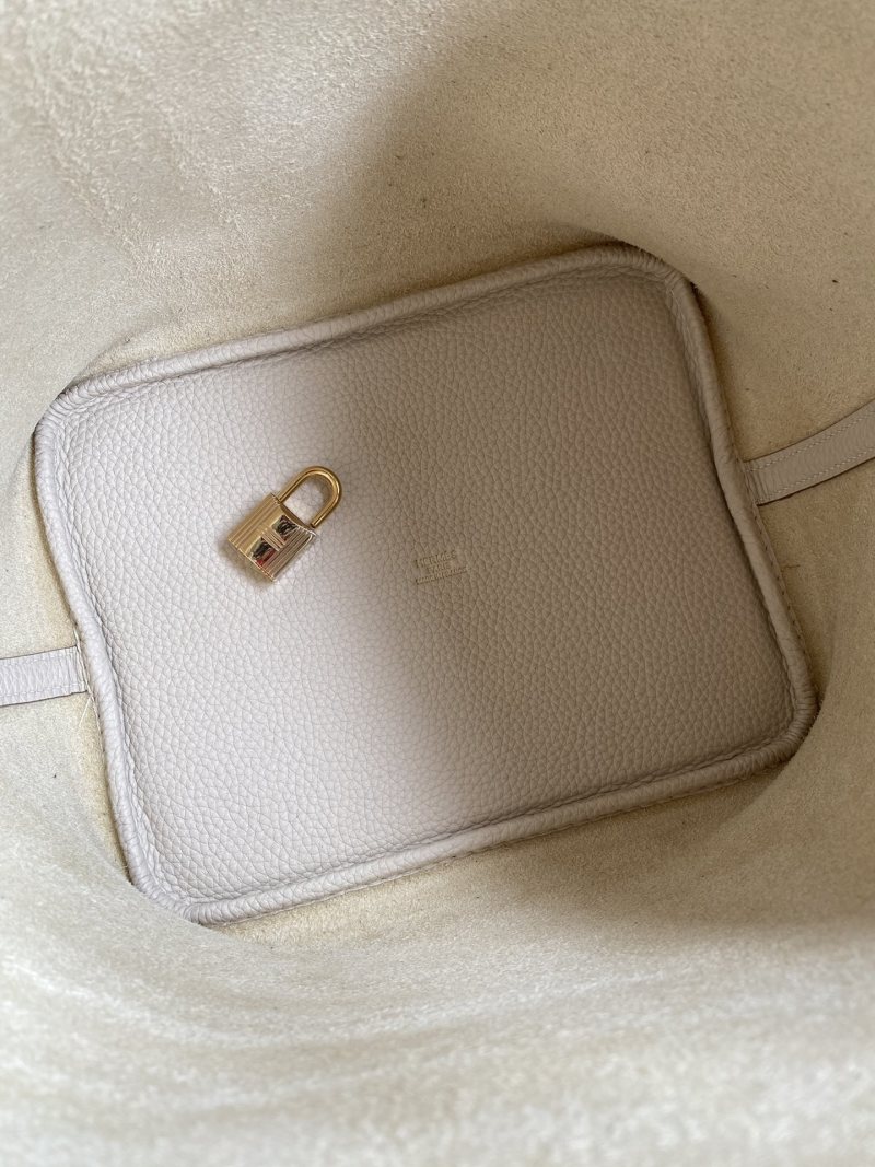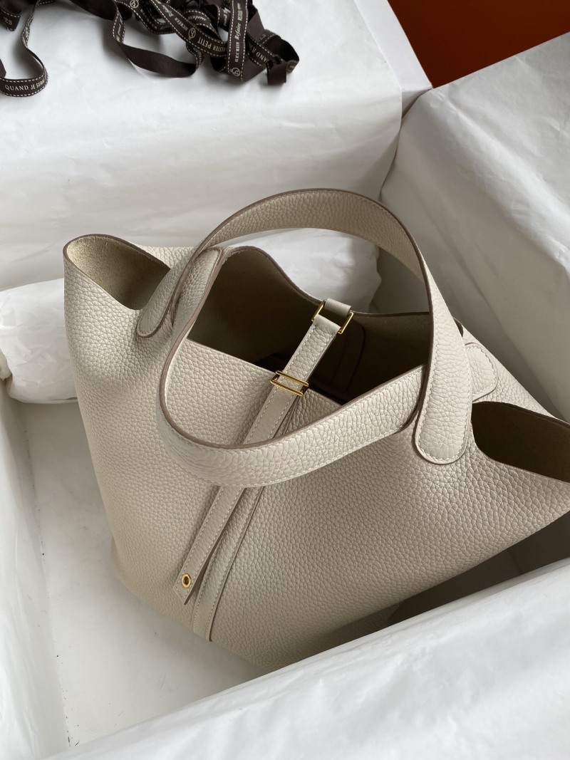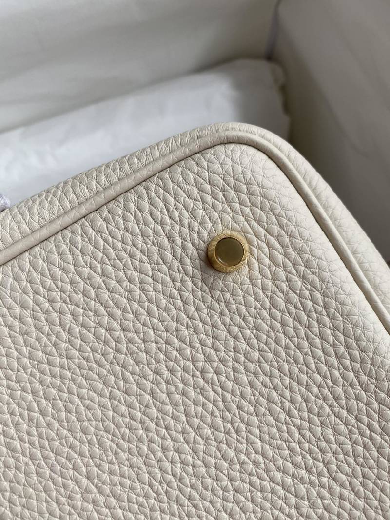 Hand-stitched Picotin Basket Bag 22cm in Imported Taurillon Clemence Leather, Milk White with Gold Buckle