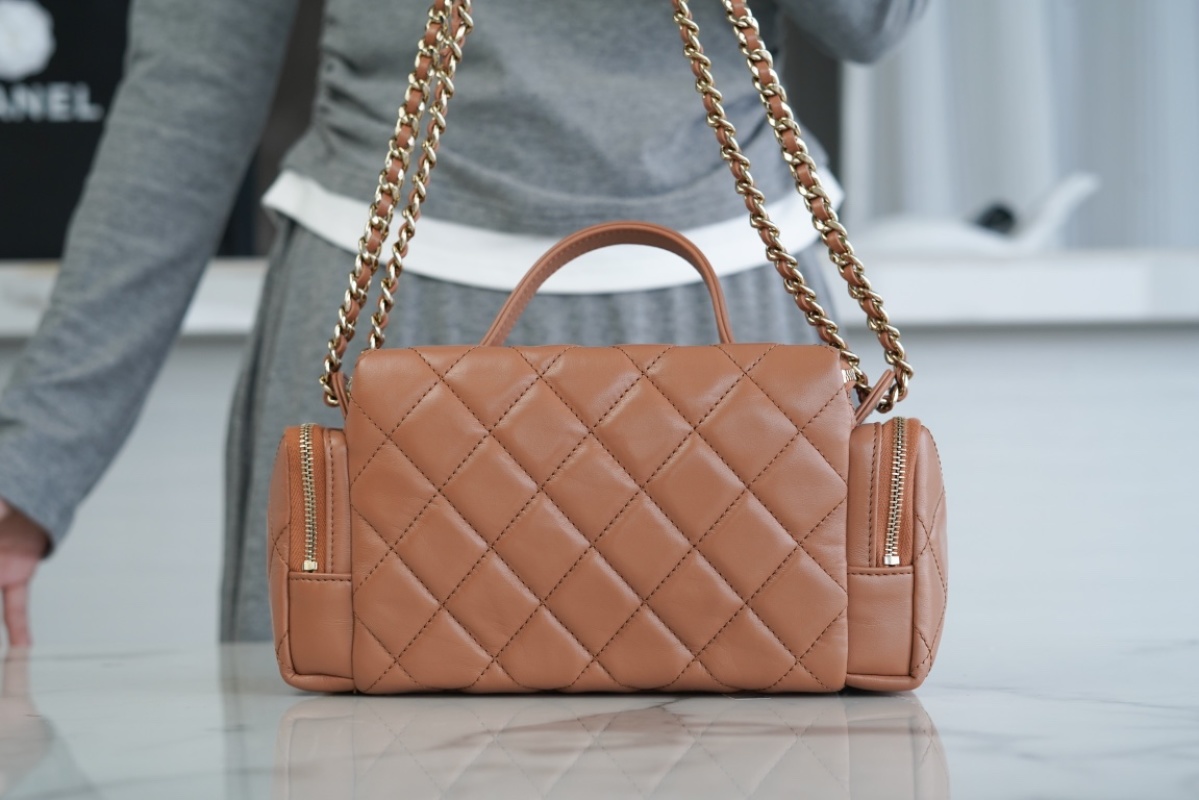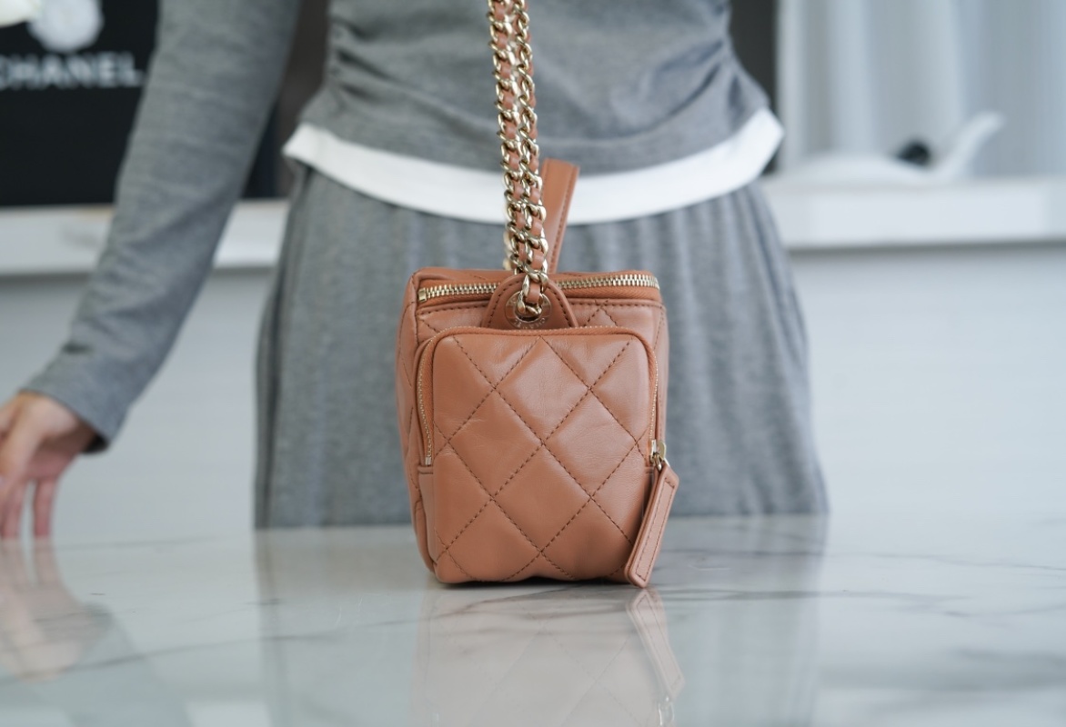 This CHANEL 24K makeup bag in caramel brown lambskin material is a must-have item for any fashion enthusiast. With a soft and supple texture, this bag exudes luxury and elegance. The transparent and misty sheen of the leather adds a touch of sophistication to the overall design. Measuring 14*23*9cm, this bag is both compact and spacious. Get yours today at the counter for RMB.