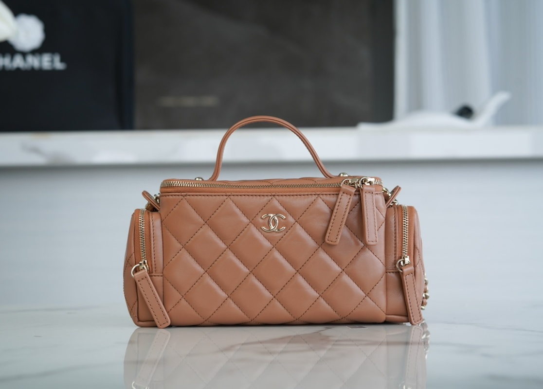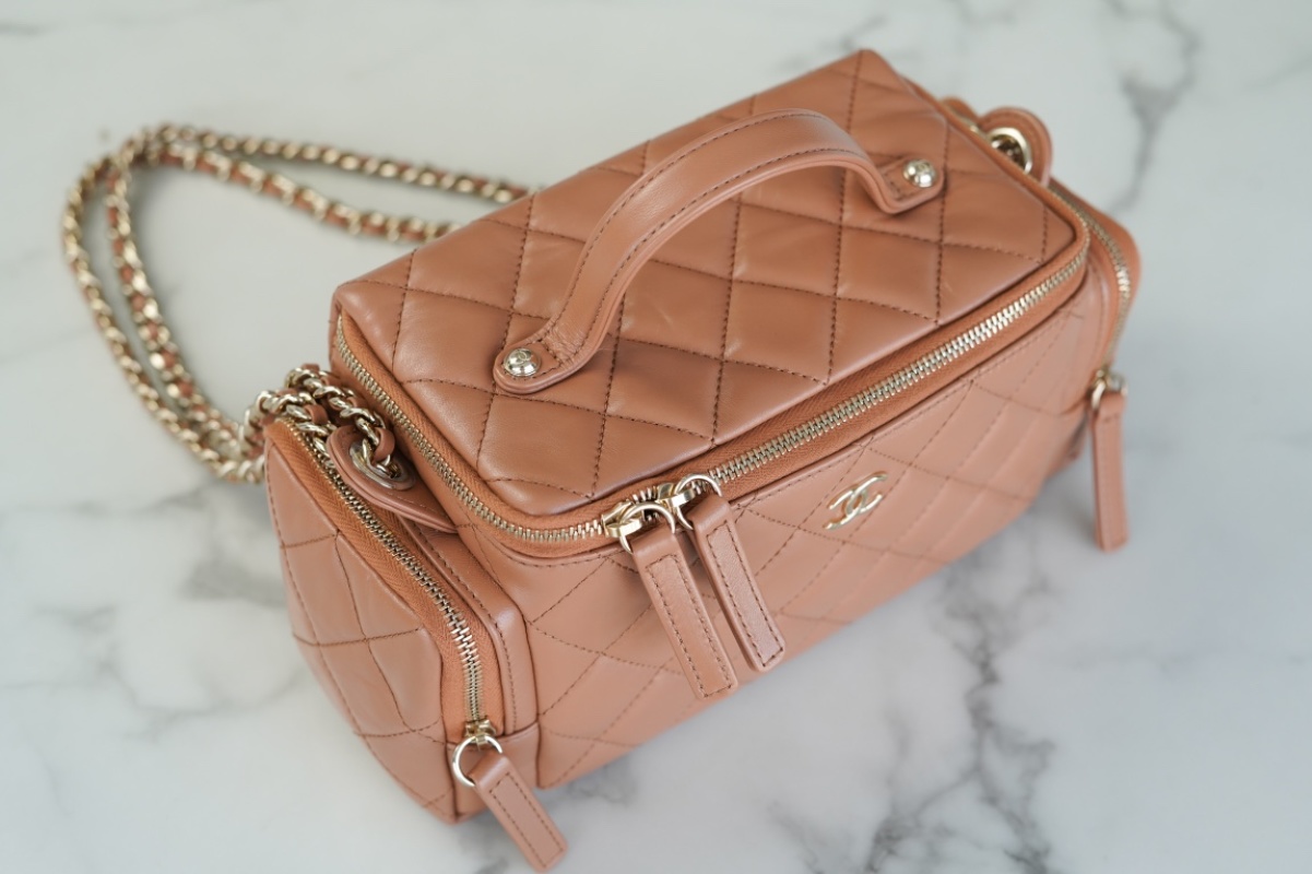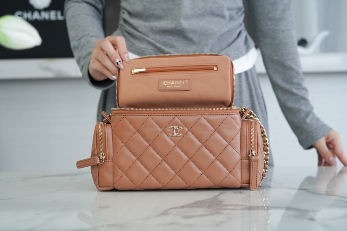 Hot Item Alert! CHANEL 24K Makeup Bag in Caramel Brown Lambskin Material