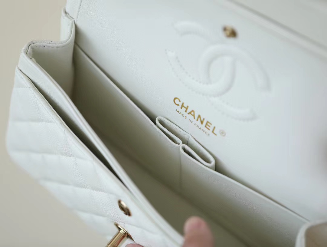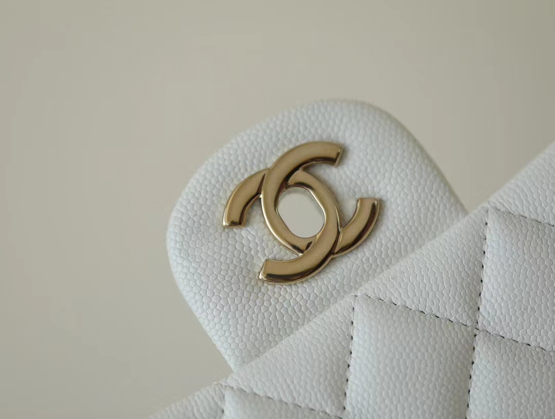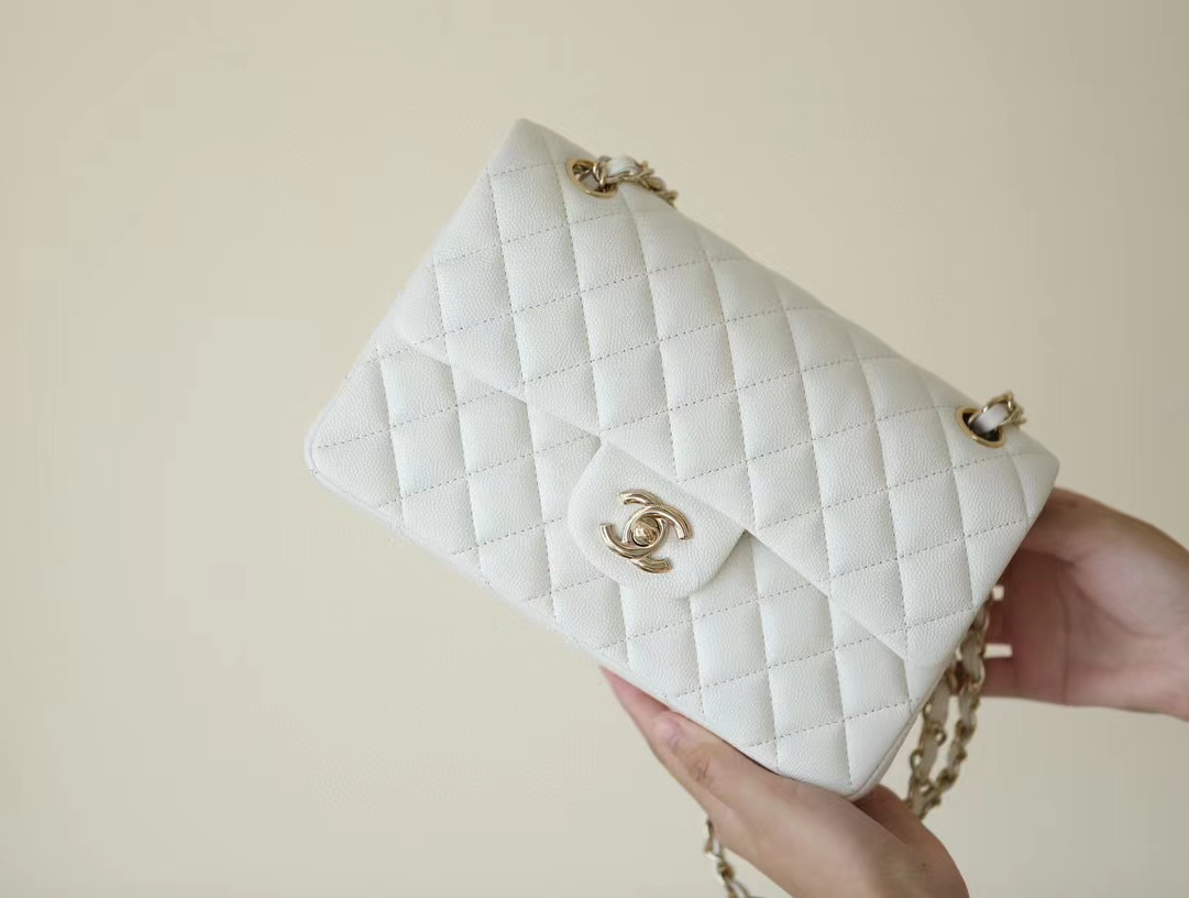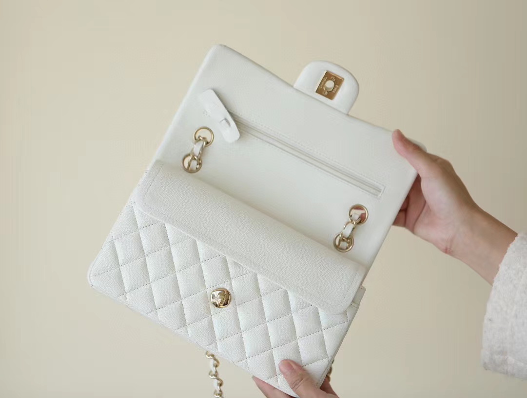 Perfect for dates, work, or parties, the Chanel CF “Snow White” bag is a go-to classic that never fails. Its cute yet fashionable white design exudes charm and elegance. Paired with authentic Hass mini studs, it’s both stylish and versatile. Crafted in premium Hass leather with thick gold-plated hardware, this 23 cm bag is a must-have for any occasion. Material: Hass leather Hardware: Thick gold-plated Size: 23 cm