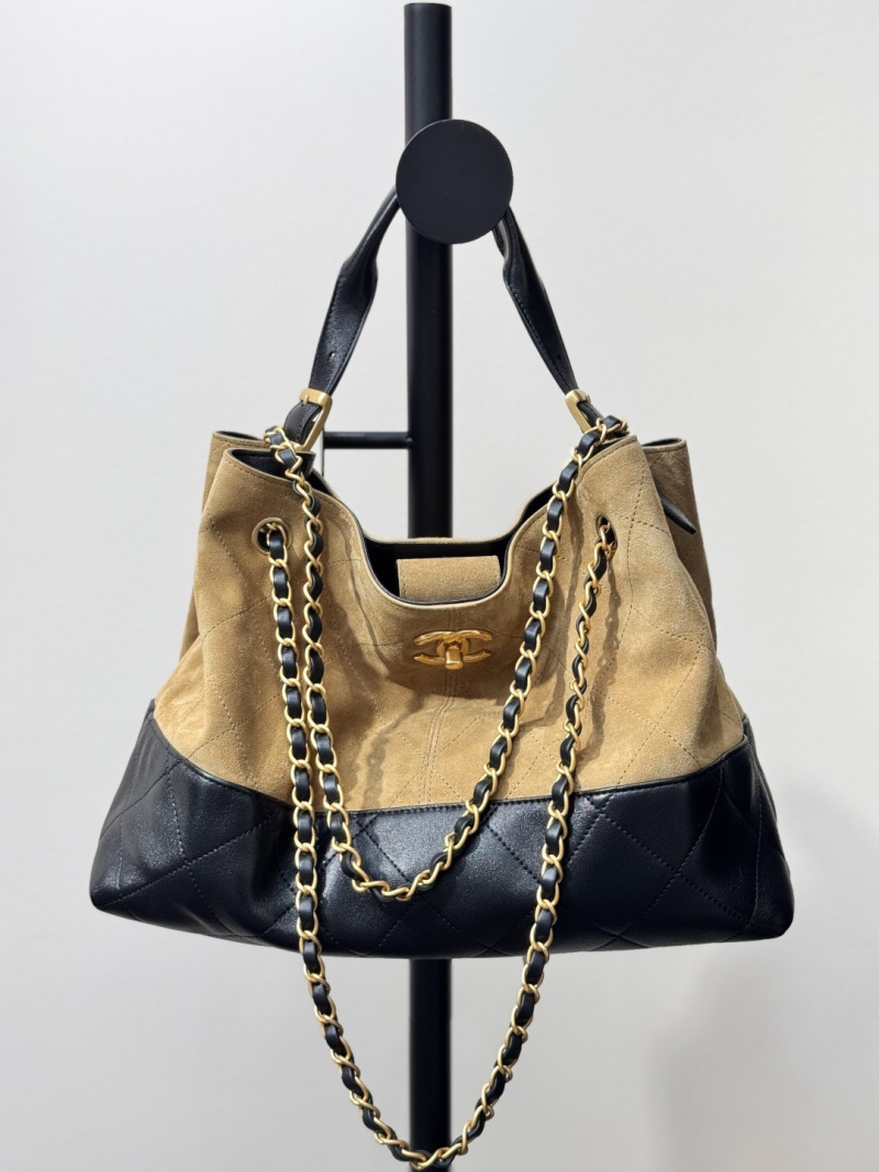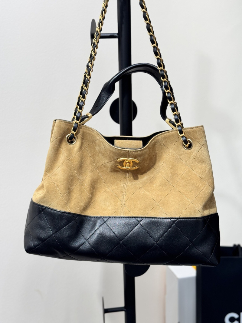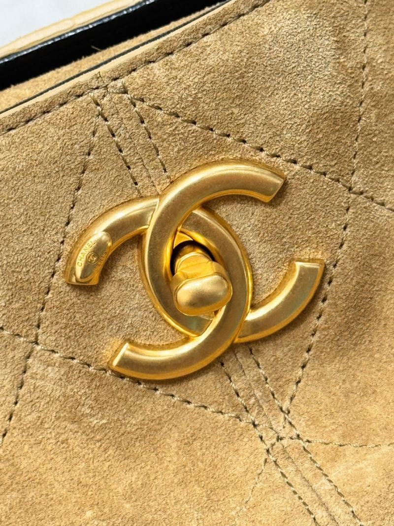 This suede and smooth calf leather patchwork bag is simply a fairy-like design! The high-grade suede and smooth calf leather collide, creating a luxurious texture with diamond pattern and classic double C logo, low-profile luxury!!️ Suede and glossy leather create a textured feel! The vintage gold chain is adjustable, and it can be carried as a single shoulder, crossbody, or hand-held bag! The capacity can hold a mobile phone, lipstick, and cushion, practical and not collapsible! Versatile and f