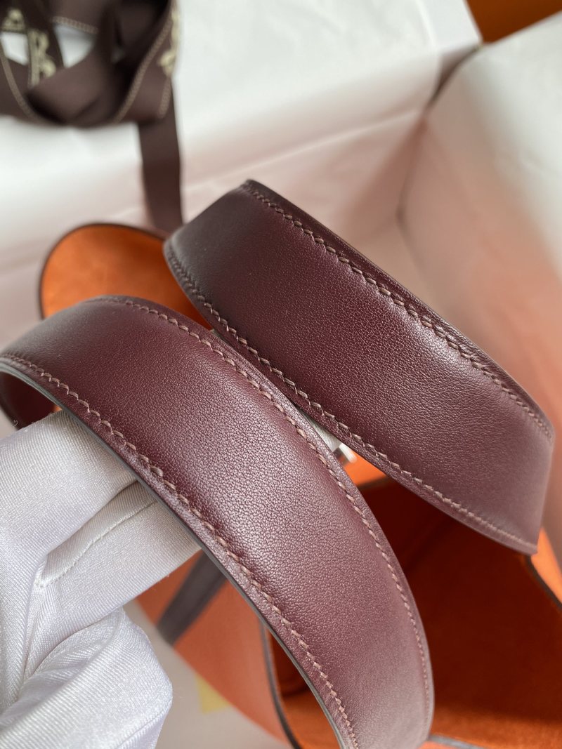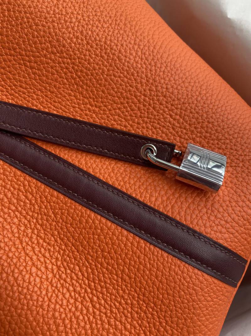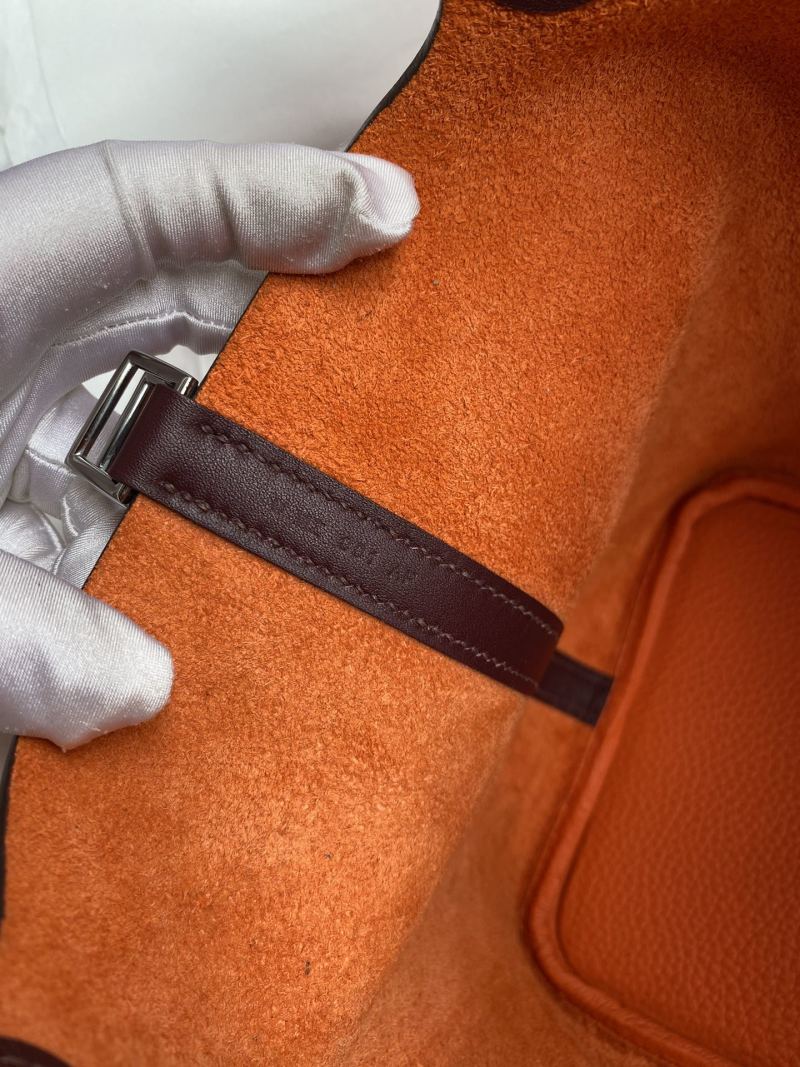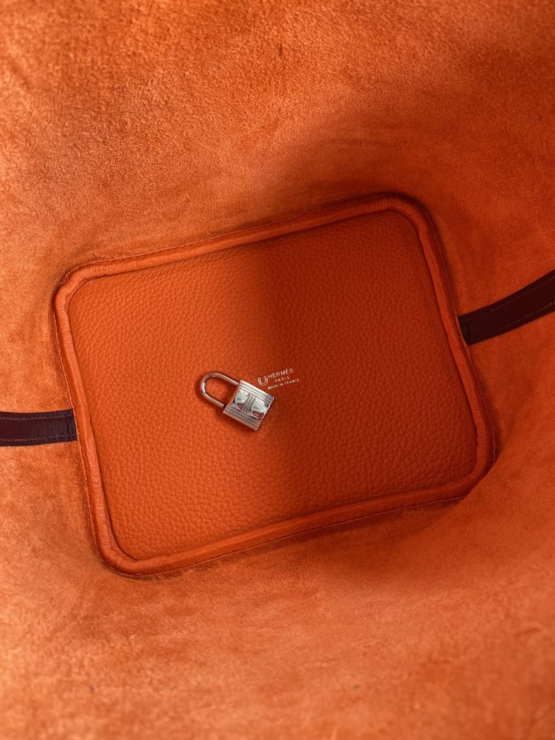 Hand-stitched Picotin 22cm Basket Bag in Imported Taurillon Clemence Leather with Swift Flame Orange/Burgundy Color and Silver Clasp