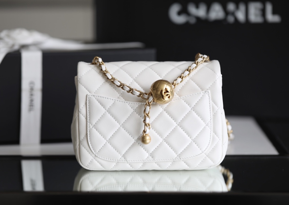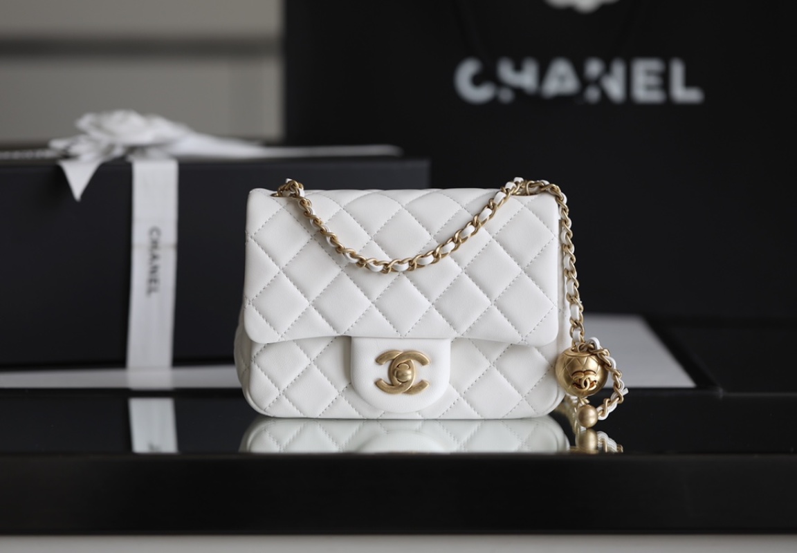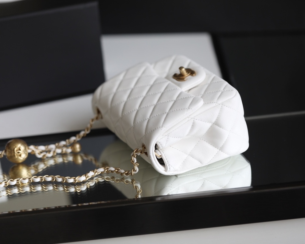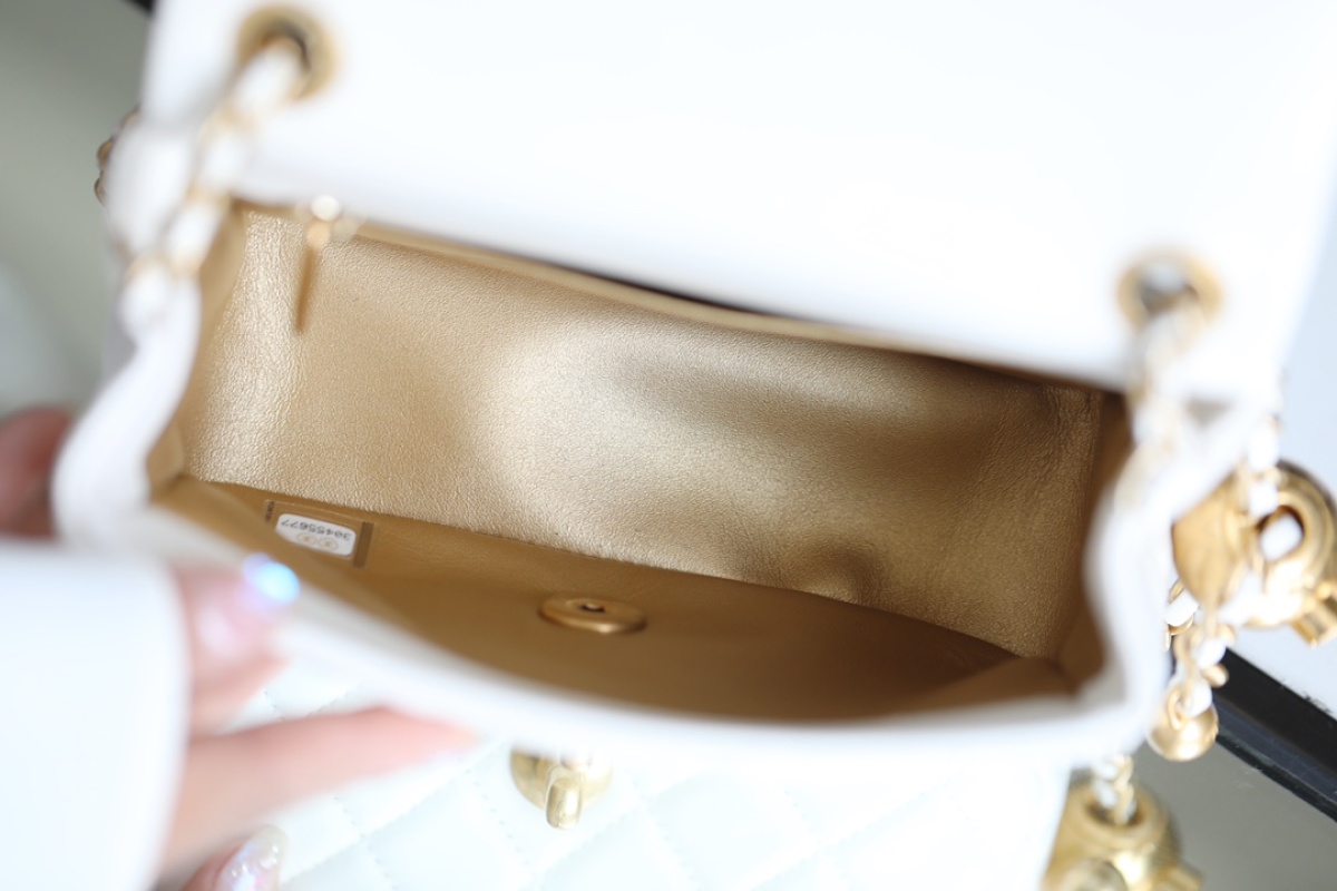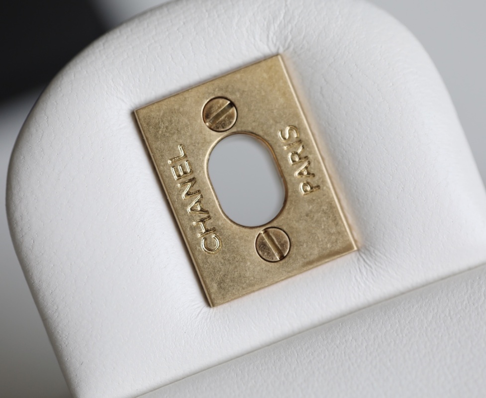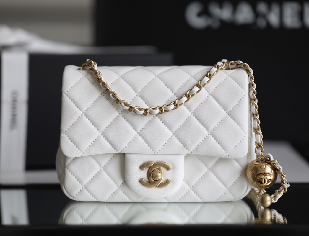 Brand New Spot Real Shot 🌟 Hurry up, Bosses! Brand New Gold Ball Mouth Cover Bag White ZP Grade Small Sheepskin Mouth Cover Bag Evolutionary Classic Flap Innovative Interpretation Mini CF Square Fat B