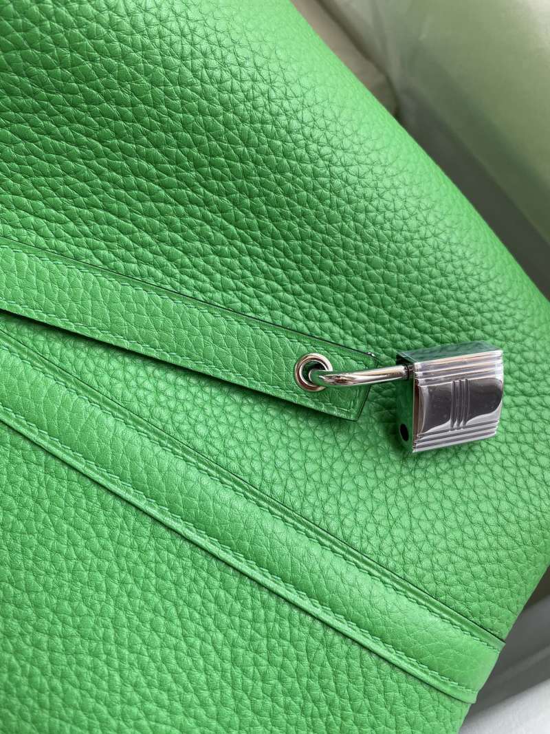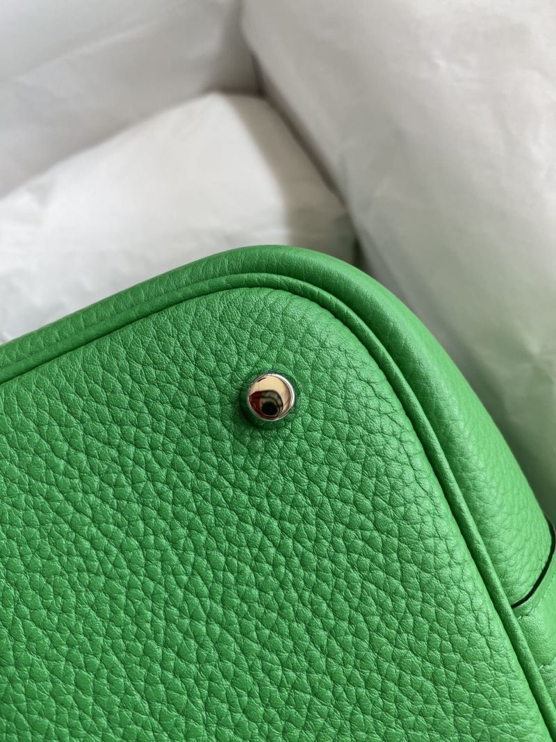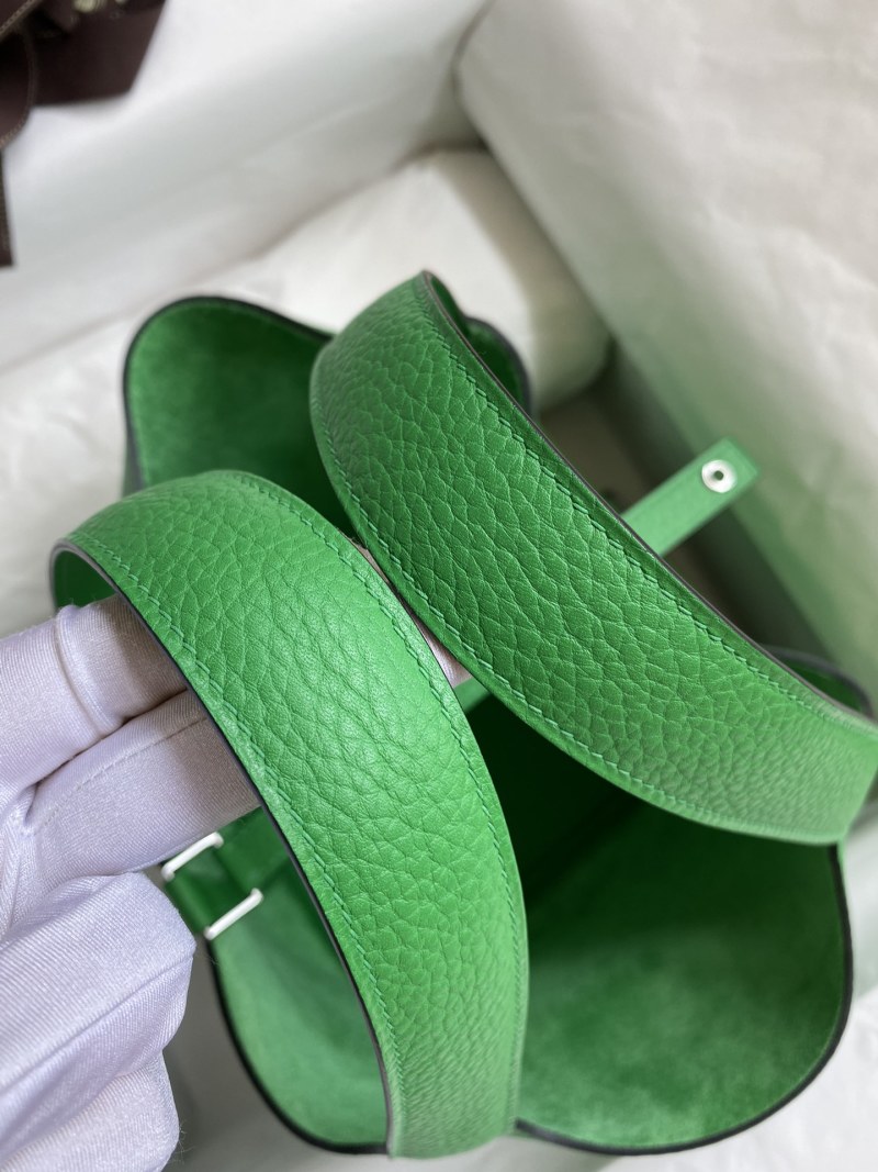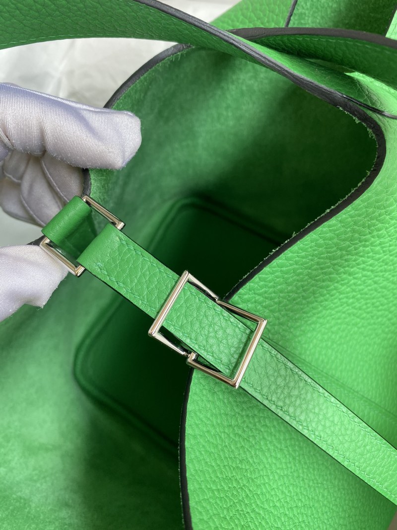 Hand-stitched Picotin Basket...22cm Imported Taurillon Clemence Leather in Bamboo Green with Silver Buckle