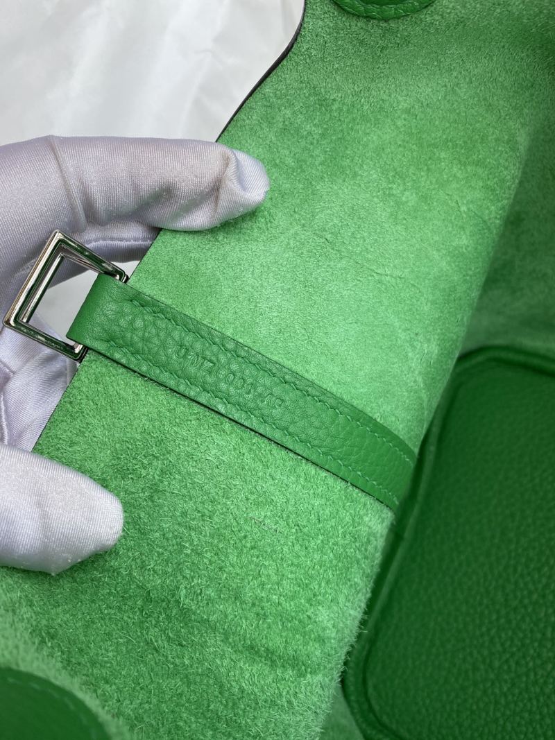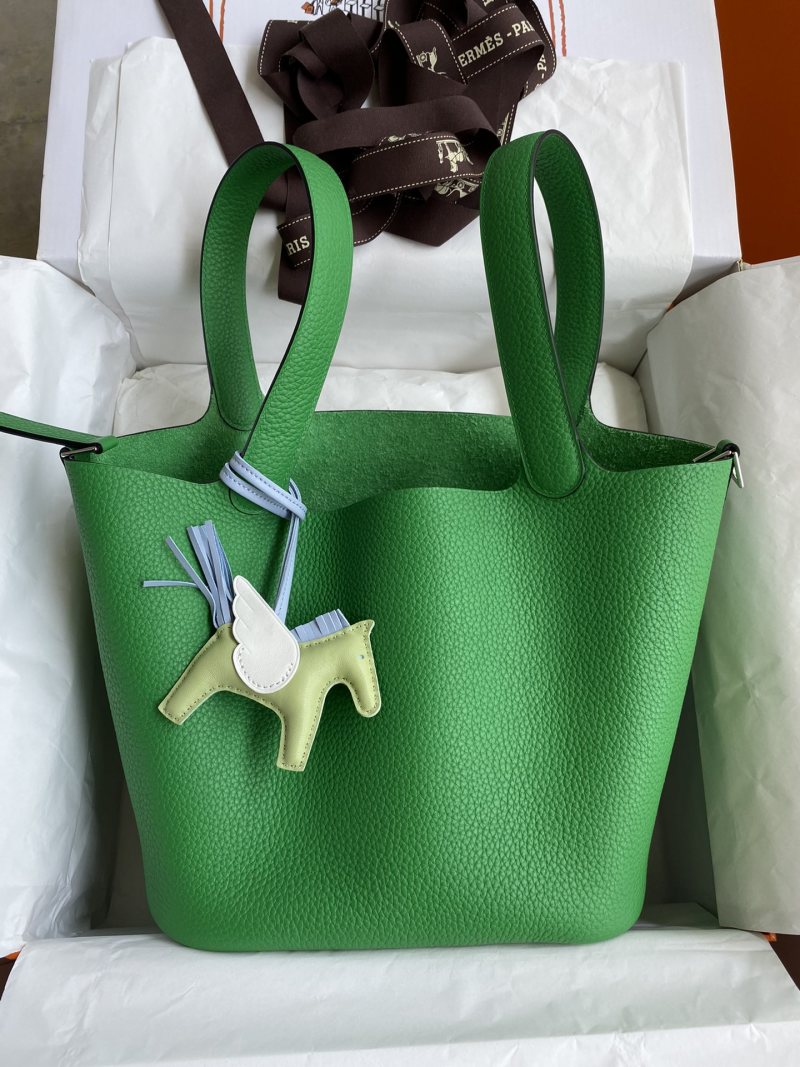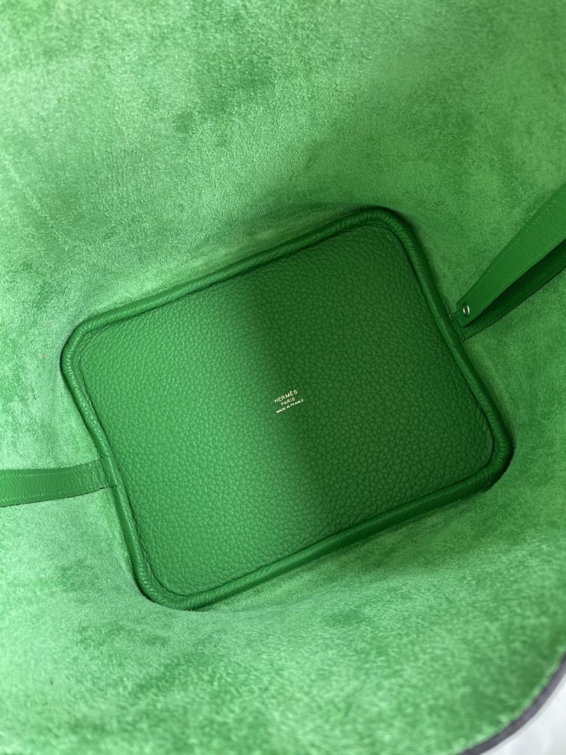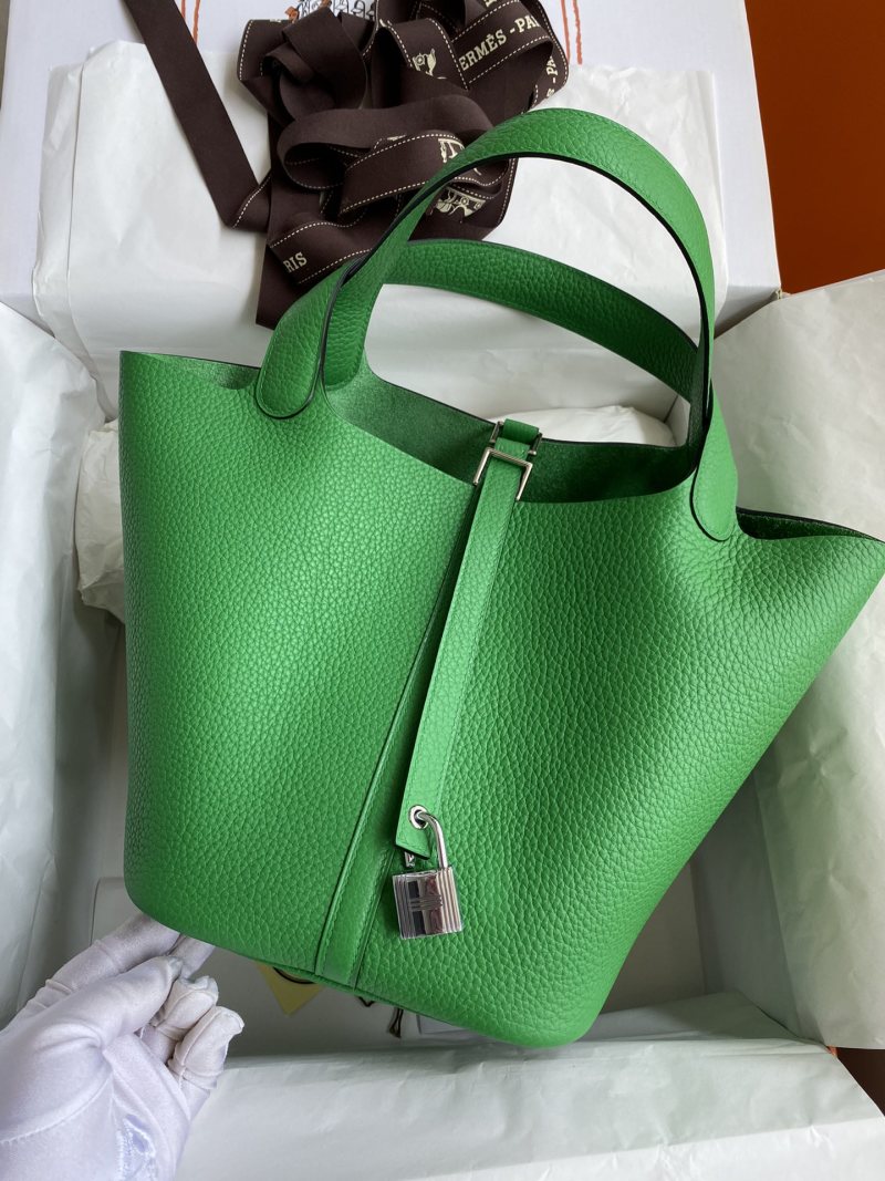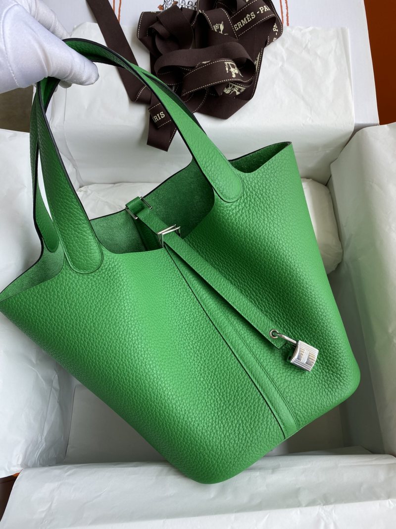 Hand-stitched Picotin Basket...22cm Imported Taurillon Clemence Leather in Bamboo Green with Silver Buckle