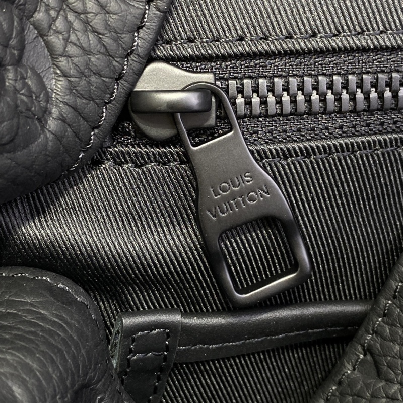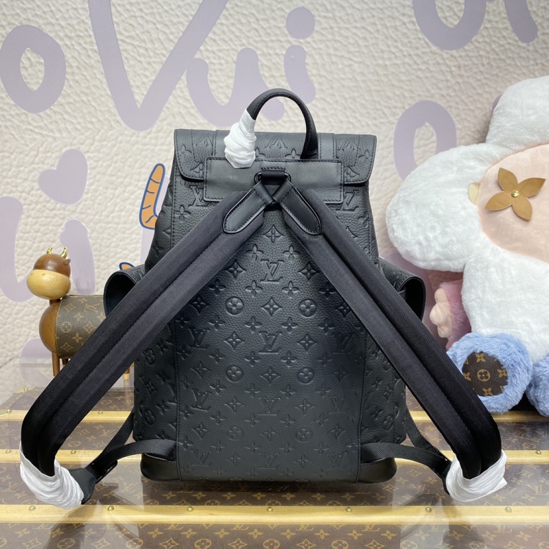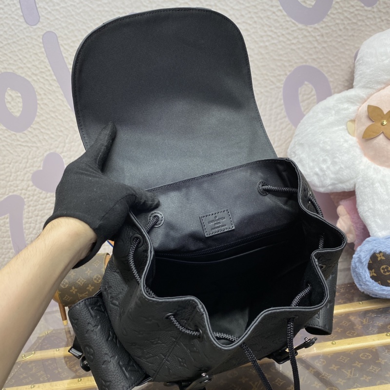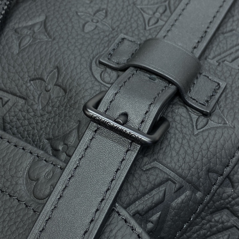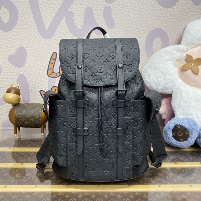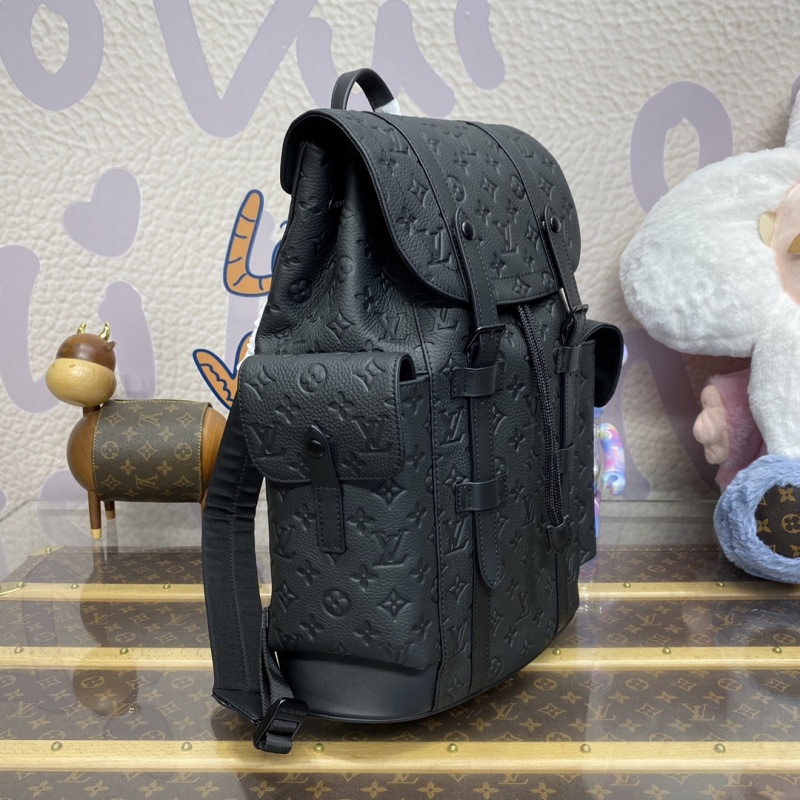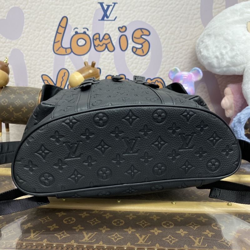 The M24428 in green, M55699 in black, and M23189 in blue (41379) from the Christopher collection feature a supple Monogram embossed Taurillon leather, bringing a touch of sophistication to outdoor adventures. This medium-sized backpack includes multiple compartments and a padded laptop pocket, perfect for on-the-go lifestyles. Dimensions: 38*44*12.5cm.
