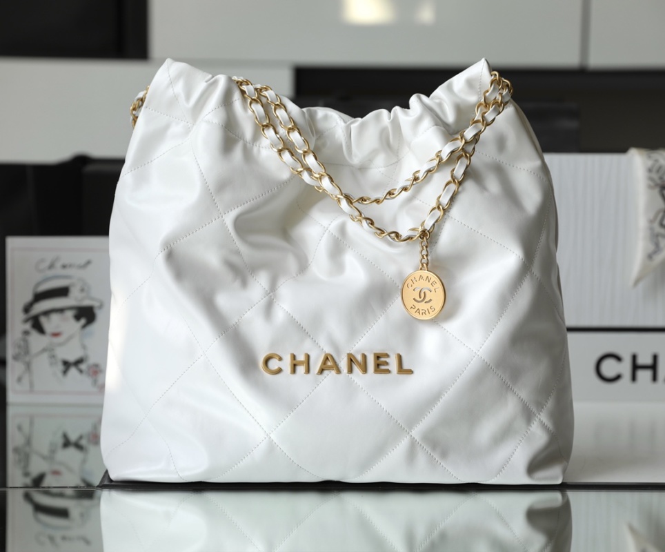 New Arrival!! Super popular 22bag medium size Chane1 22s | White with gold clasp