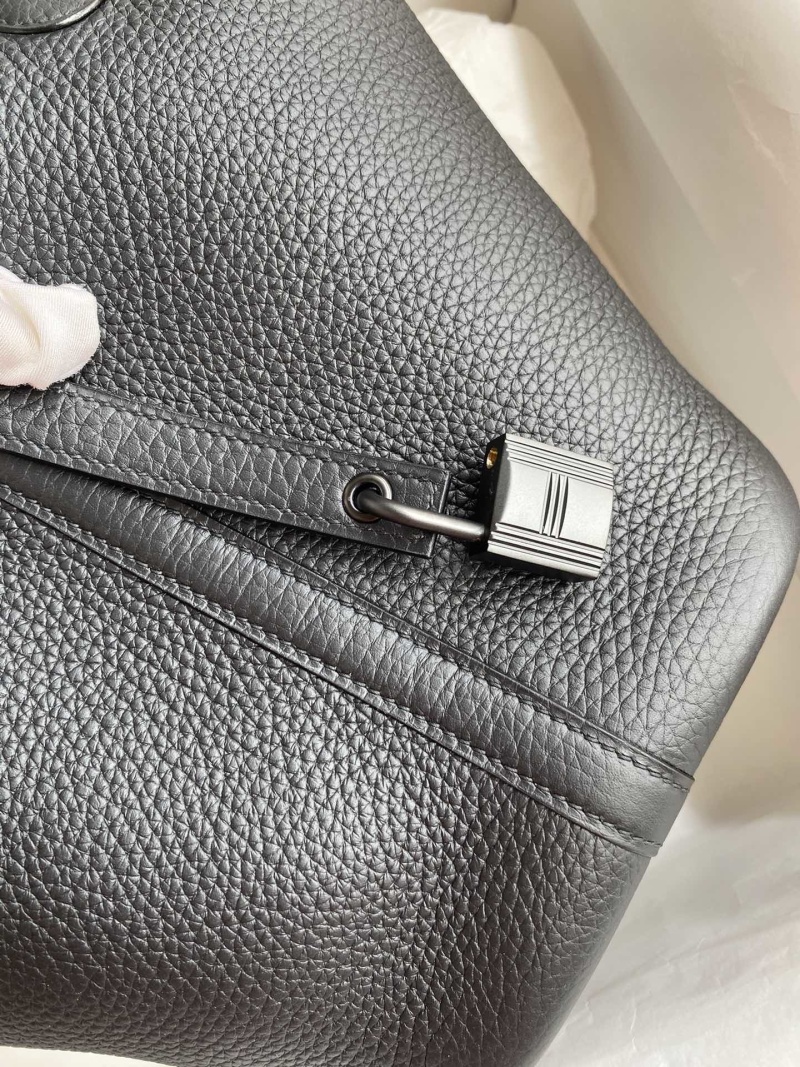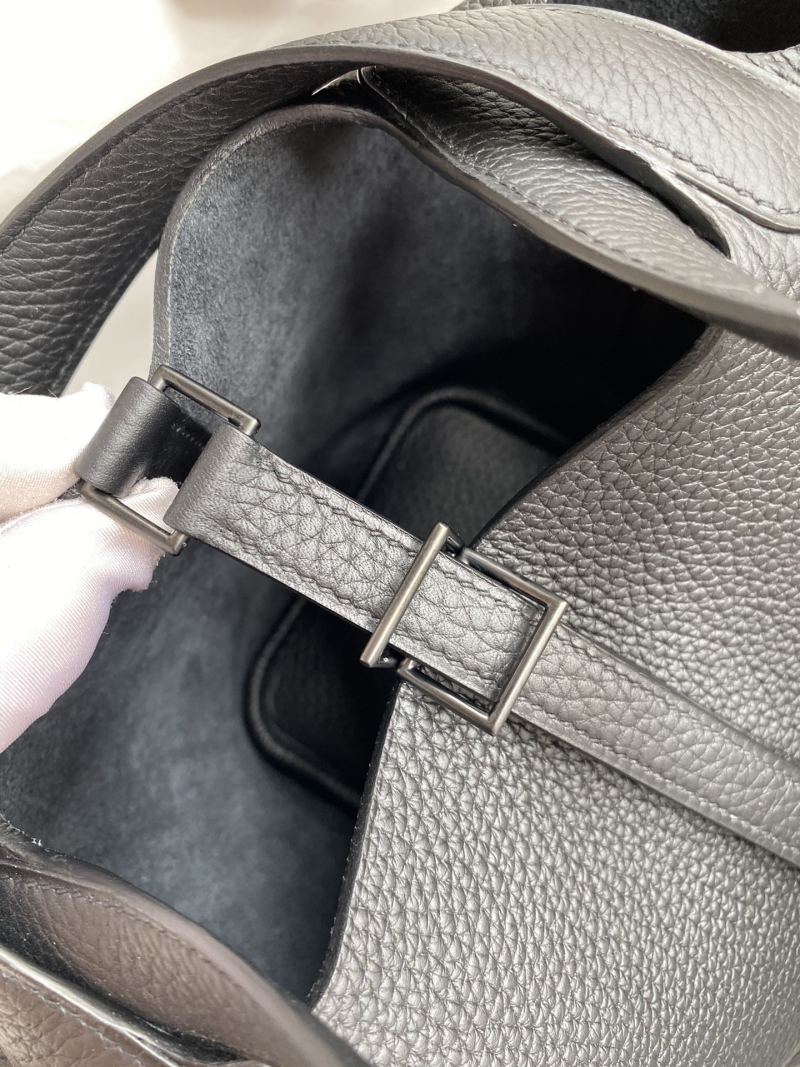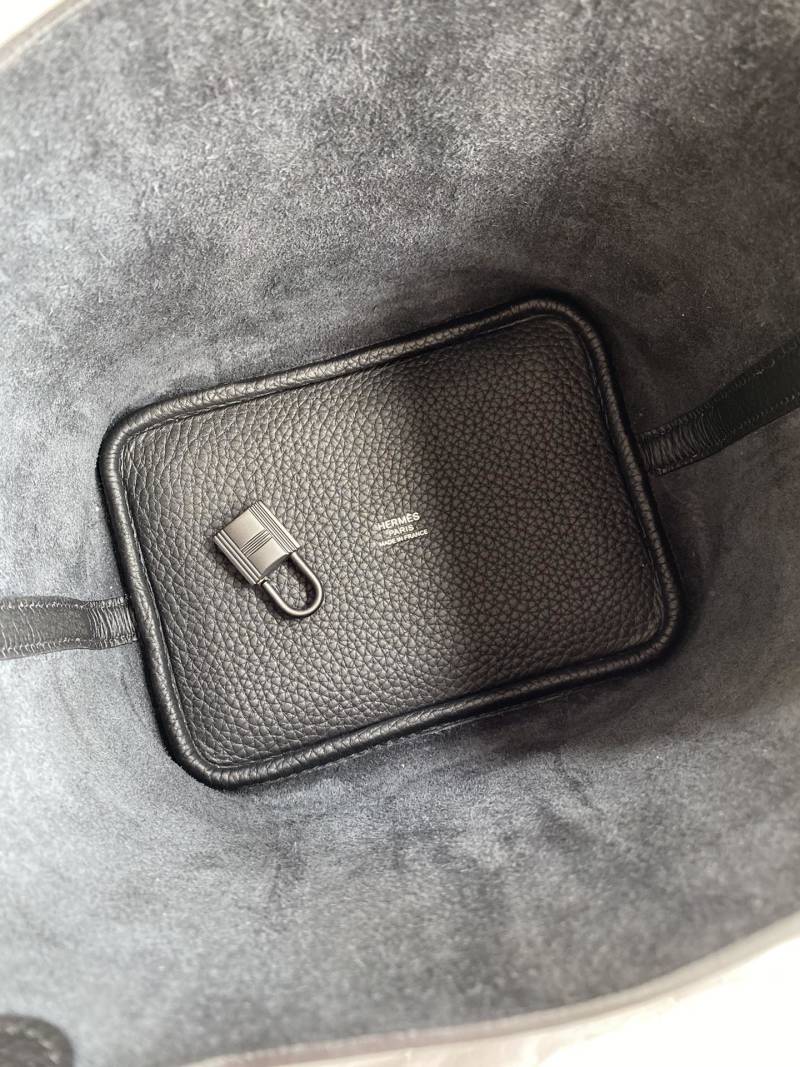 Handmade Picotin...18cm Imported Taurillon Clemence Leather So Black Matte Black Buckle